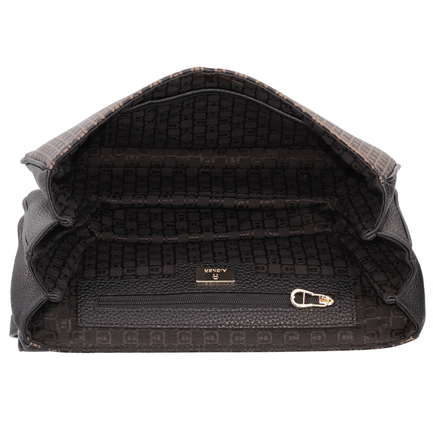 Luxuriöse Umhängetasche der Marke Aigner mit Logoprint und edlen Details aus Metall. Das charakteristische Aigner-Logo auf der Vorderseite verleiht der Tasche eine zeitlose Eleganz, und die Kombination mit dem geradlinigen, modernen Design macht sie zu einem echten Blickfang. Der ideale modische Begleiter für alle Gelegenheiten.