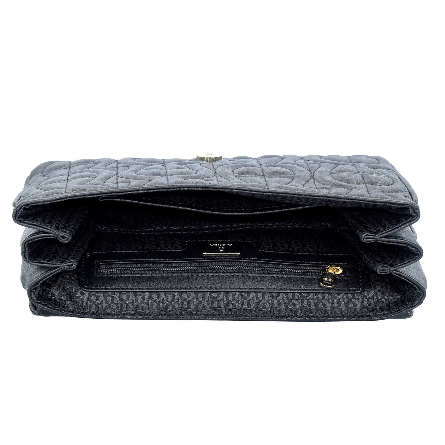 Aigner Diadora Umhängetasche aus hochwertigem Rindsleder im Allover-Logostepp. Das charakteristische Aigner-Logo rundet das elegante Design stilvoll ab.