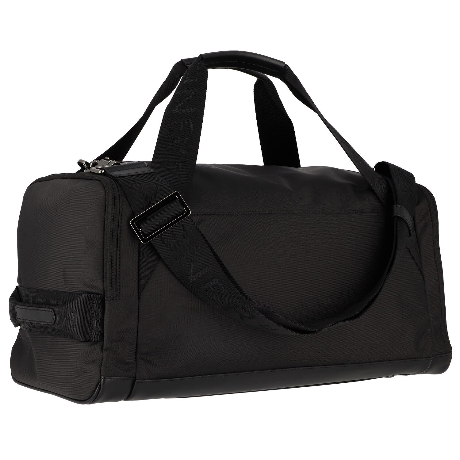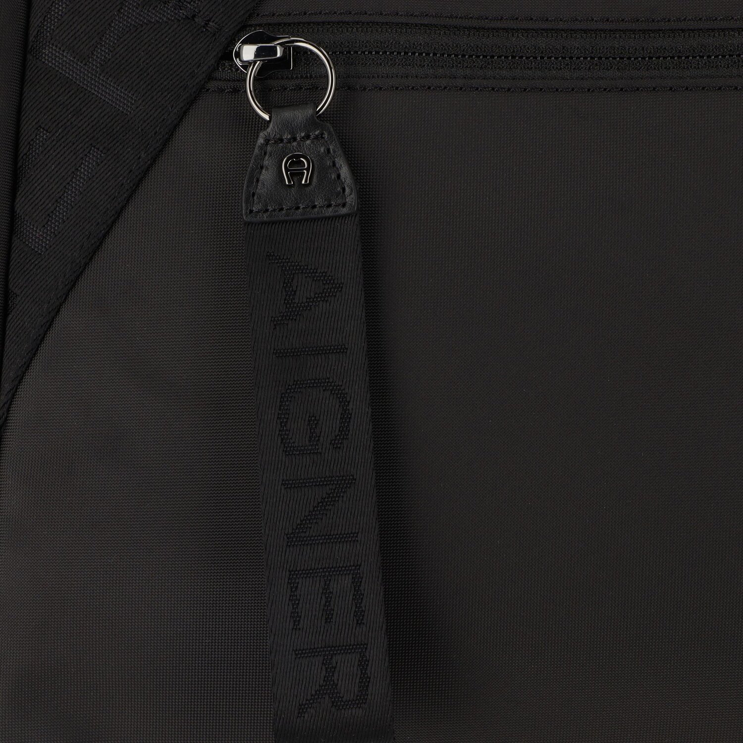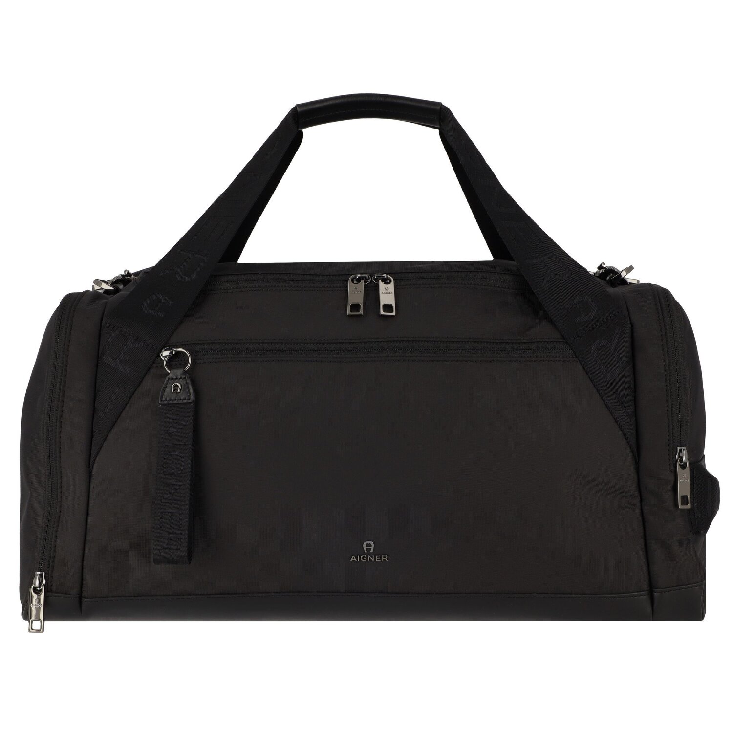 Edle Reisetasche der Marke Aigner aus strapazierfähigem Gewebe mit Logo-Print. Mit dem abnehmbaren Riemen kann man sie auch als Umhängetasche tragen. Die glänzenden, gunmetalfarbenen Metallakzente runden den Look ab. Die Tasche bietet genug Platz für einen Kurztrip.