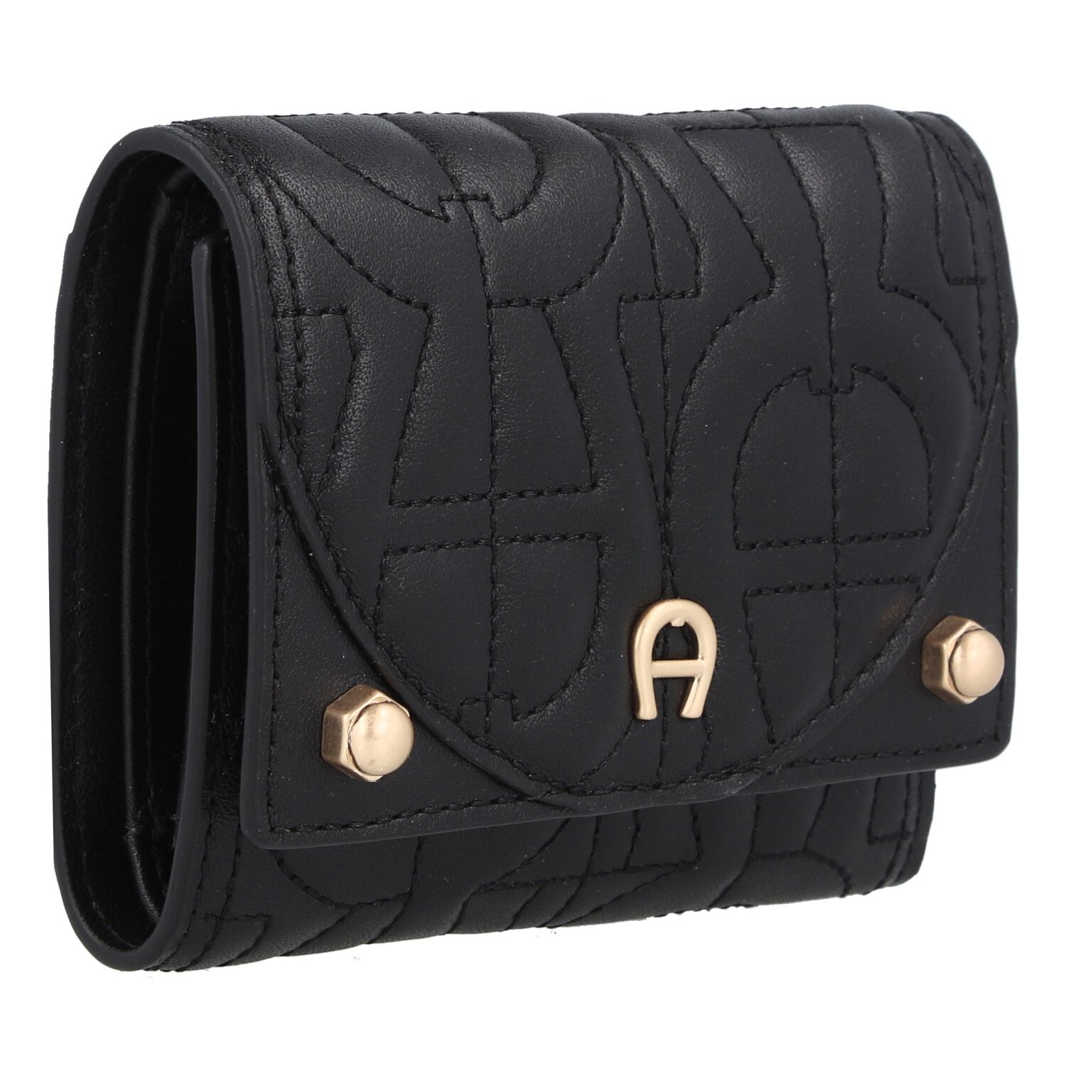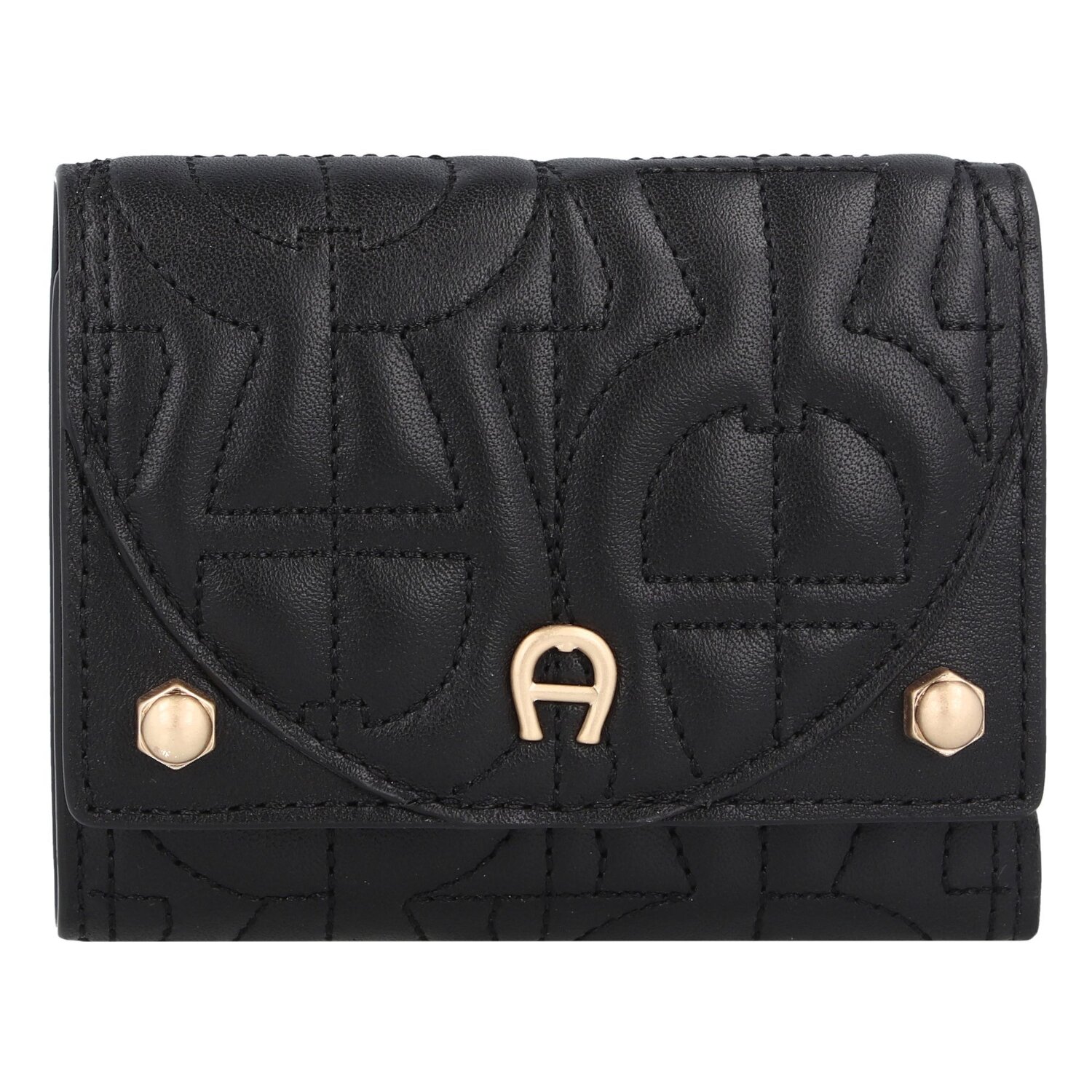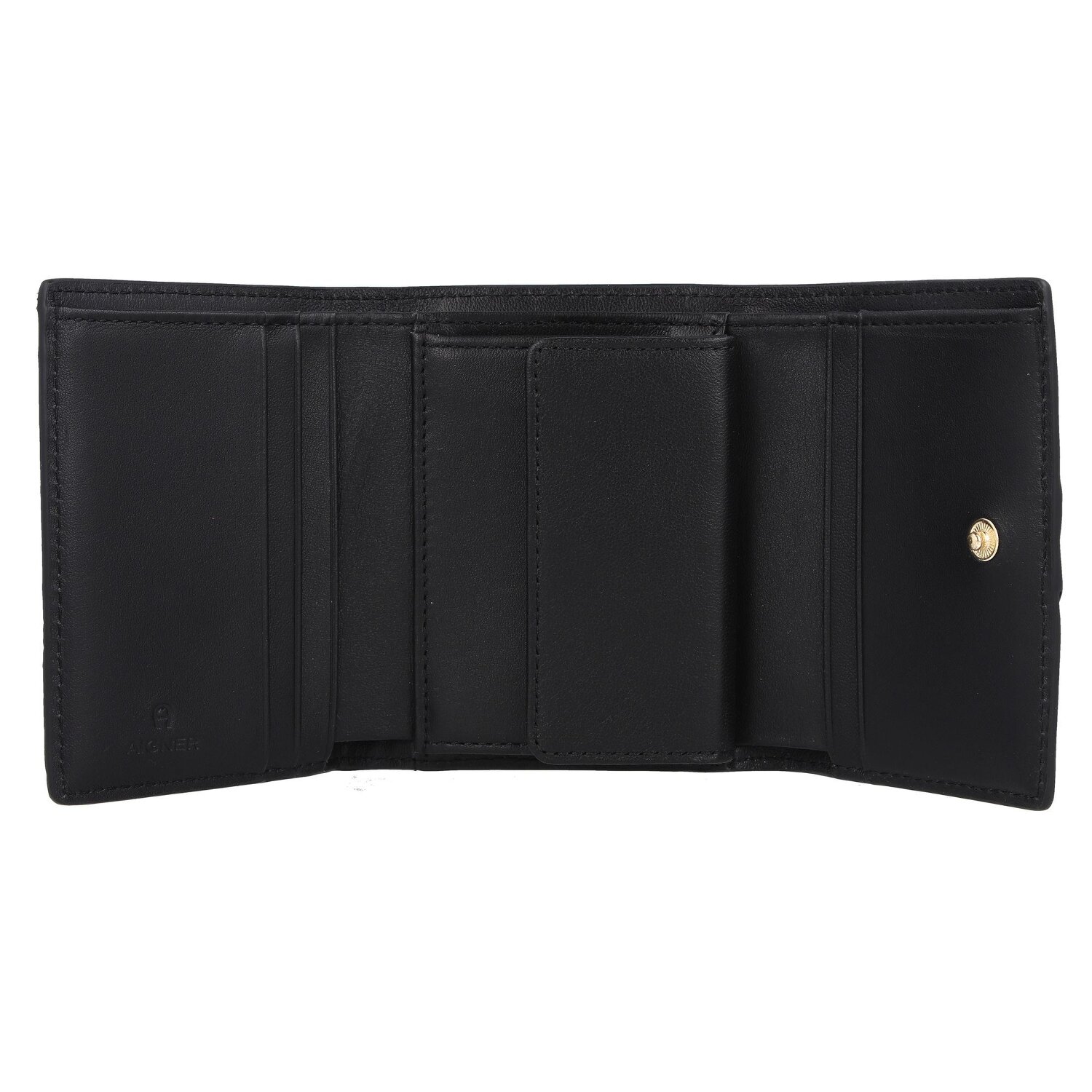 Edle Geldbörse der Marke Aigner aus strukturiertem Leder mit goldfarbenen Metalldetails. Diese Geldbörse bietet Platz für Scheine, Münzen und Karten.