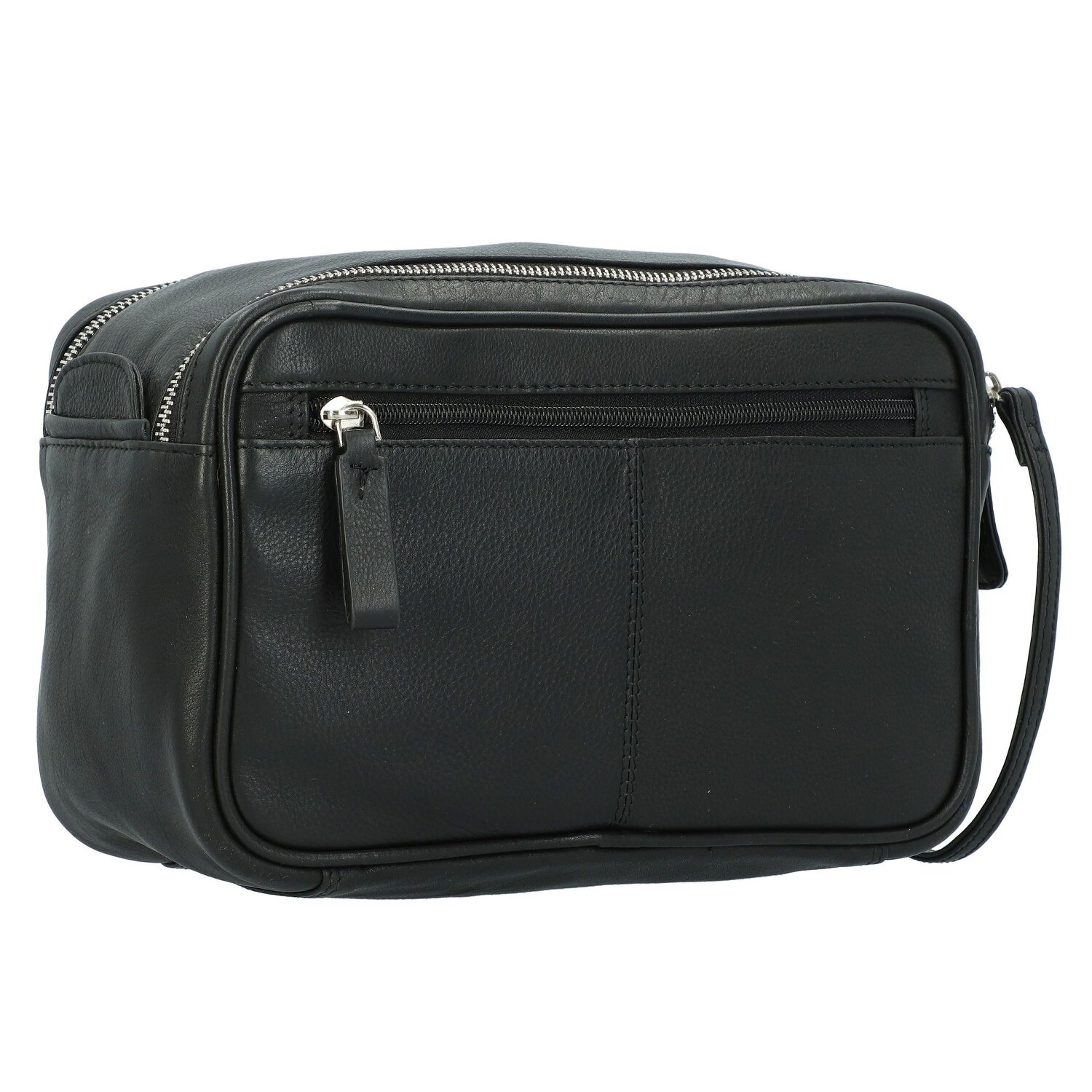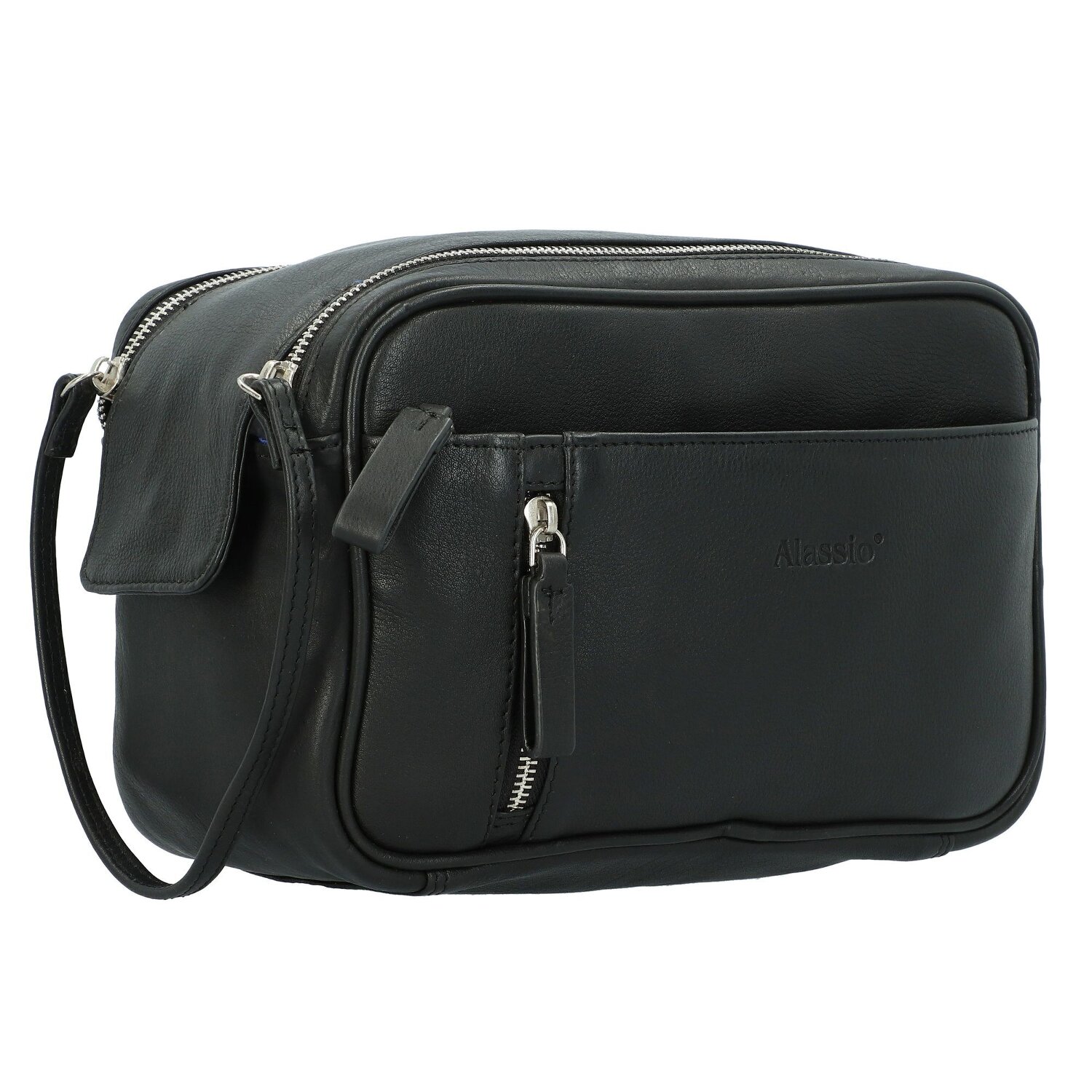 Eleganter von Alassio aus edlem Leder mit geräumigem Hauptfach wird mit doppeltem Reißverschluss geschlossen und ermöglicht dadurch einfach und schnell den Zugriff auf das gut organisierte Innenleben. Zudem lässt sich das Band zwischen den zwei Reißverschlüssen als Tragegriff verwenden. Diese Kulturtasche bietet mit einem großen Hauptfach und mehreren Nebenfächern im Innern viel Platz für Hygiene- und Kosmetikartikel.