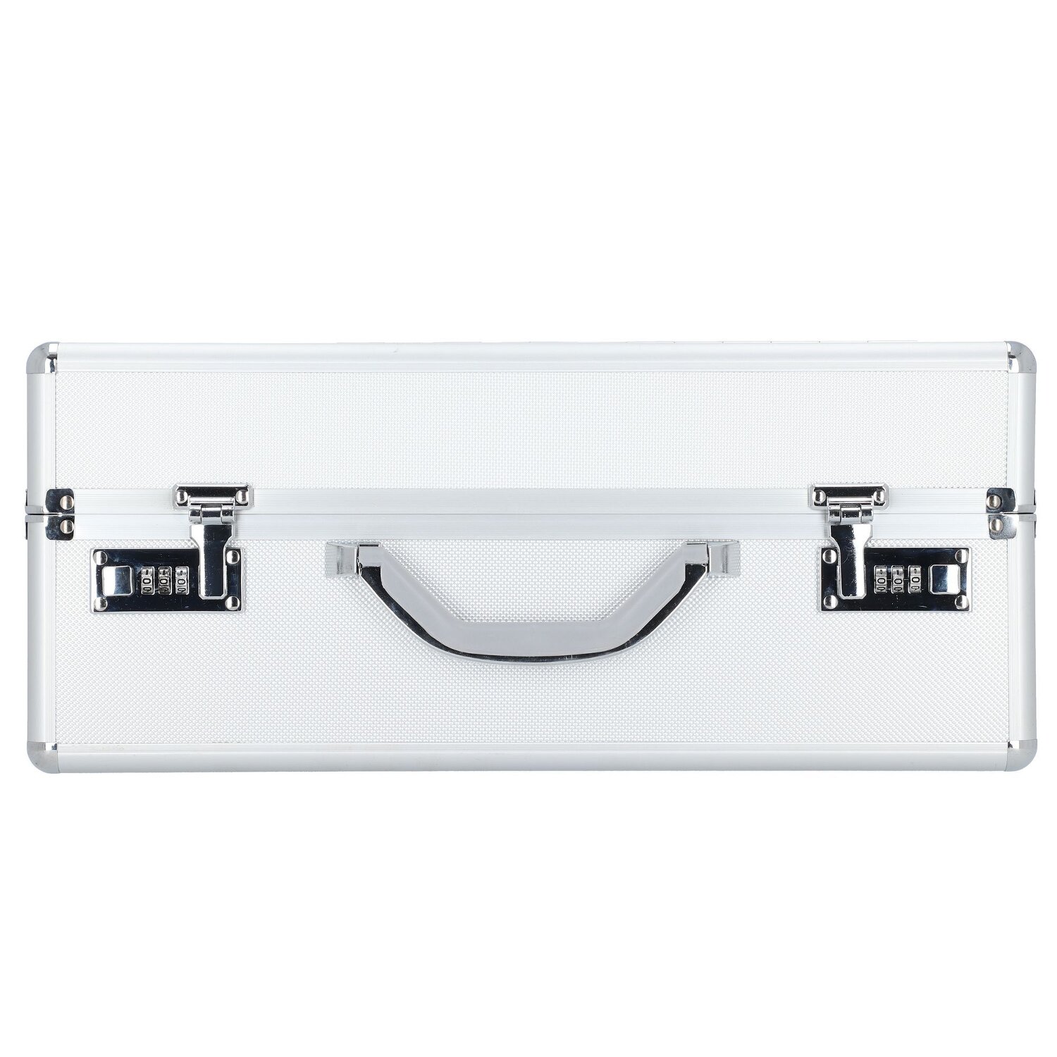 - Extras: Tragegriff, Stiftelaschen, Organizer, Fächer für A4 Unterlagen, Bodennägel