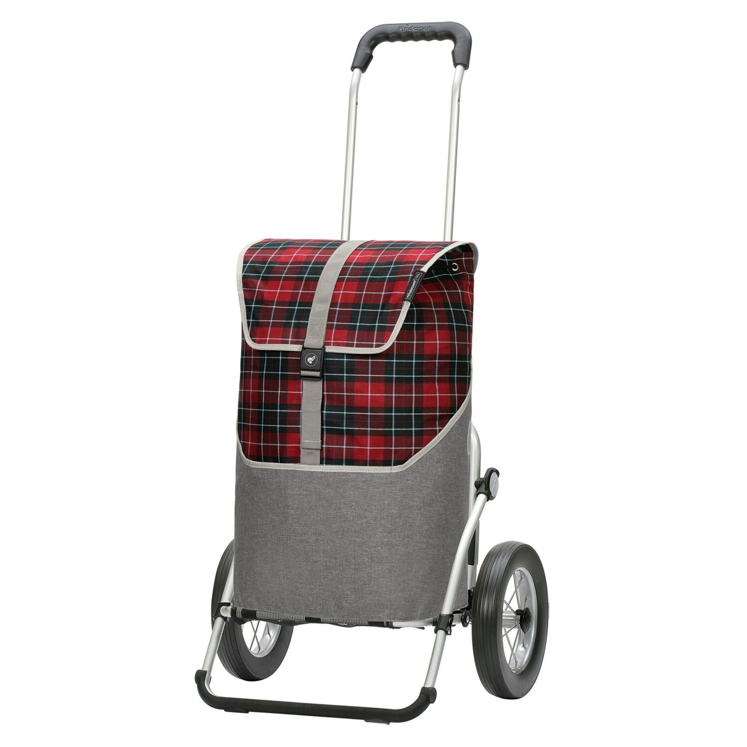 Der Einkaufstrolley der Marke Andersen Shopper besticht durch seine Funktionalität und hohe Verarbeitungsqualität. Er verfügt über Reflektoren, eine Tasche außen, eine Tasche innen und einen sehr leichten Aluminium Rahmen, sowie eine wasserabweisende Tasche, die sich per Überschlag schließen lässt. Die Tasche bietet viel Platz für ihre Einkäufe und lässt sich einfach vom Gestell entfernen. Der ideale Begleiter für ihre nächste Shoppingtour. Das Fahrgestell ist 107 cm hoch und kann mit bis zu 50 kg Gewicht beladen werden