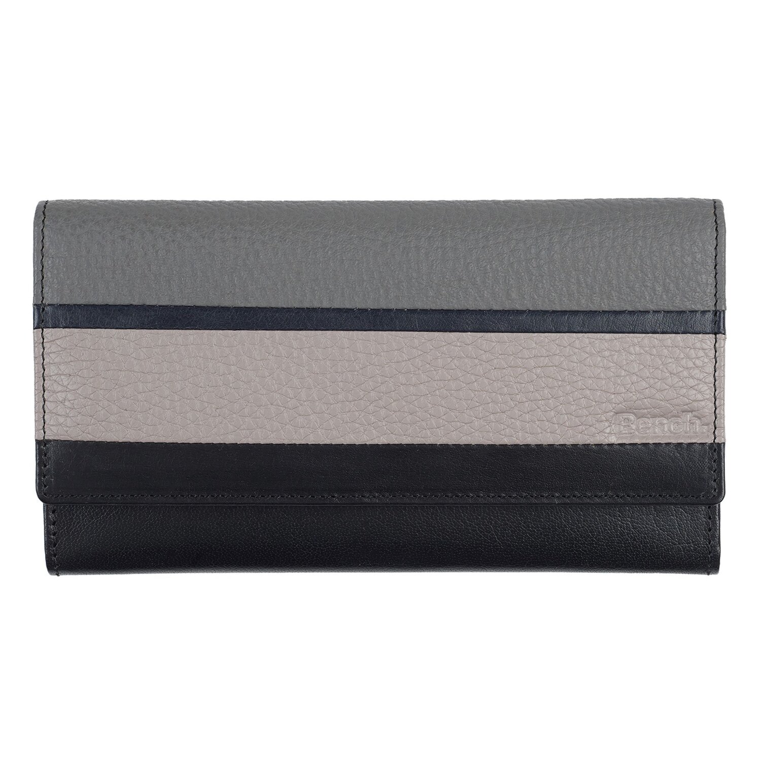 Praktische Damengeldbörse von Bench aus hochwertigem Leder mit RFID-Schutz. Im inneren befinden sich Fächer für Kreditkarten, Scheine, ein Ausweis, Münze und Belege. Mit dieser Geldbörse müssen sie auf nichts verzichten, da es für alles einen Platz gibt.