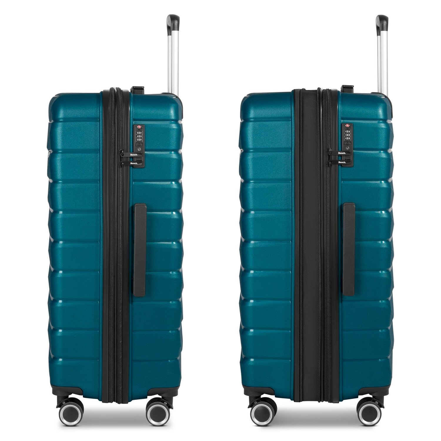 Heben Sie auf Ihrer nächsten Reise das Gepäckerlebnis mit dem Bench Paris Trolley hervor, der Härte mit 4-rolligem Komfort verbindet. Dieser innovative Trolley bietet eine Fülle von Features, darunter ein Wäschefach, eine Dehnfalte für zusätzlichen Platz und einen arretierbaren Griff für leichte Handhabung. Mit einem Kreuzpackgurt, Reißverschlussfach und internen Taschen ist Organisation am Flugsteig ein Kinderspiel. Der Tragegriff erleichtert das Heben in Überkopffaecher und der robuste Polypropylen-Koffer schützt Ihre Habseligkeiten. Klar nach vorne blickend, ist der Bench Paris Trolley die smarte Wahl für den modernen Reisenden. Holen Sie sich Ihr Exemplar noch heute! Dank der Dehnfalte lässt sich der Koffer auf eine Breite von 35 cm erweitern.