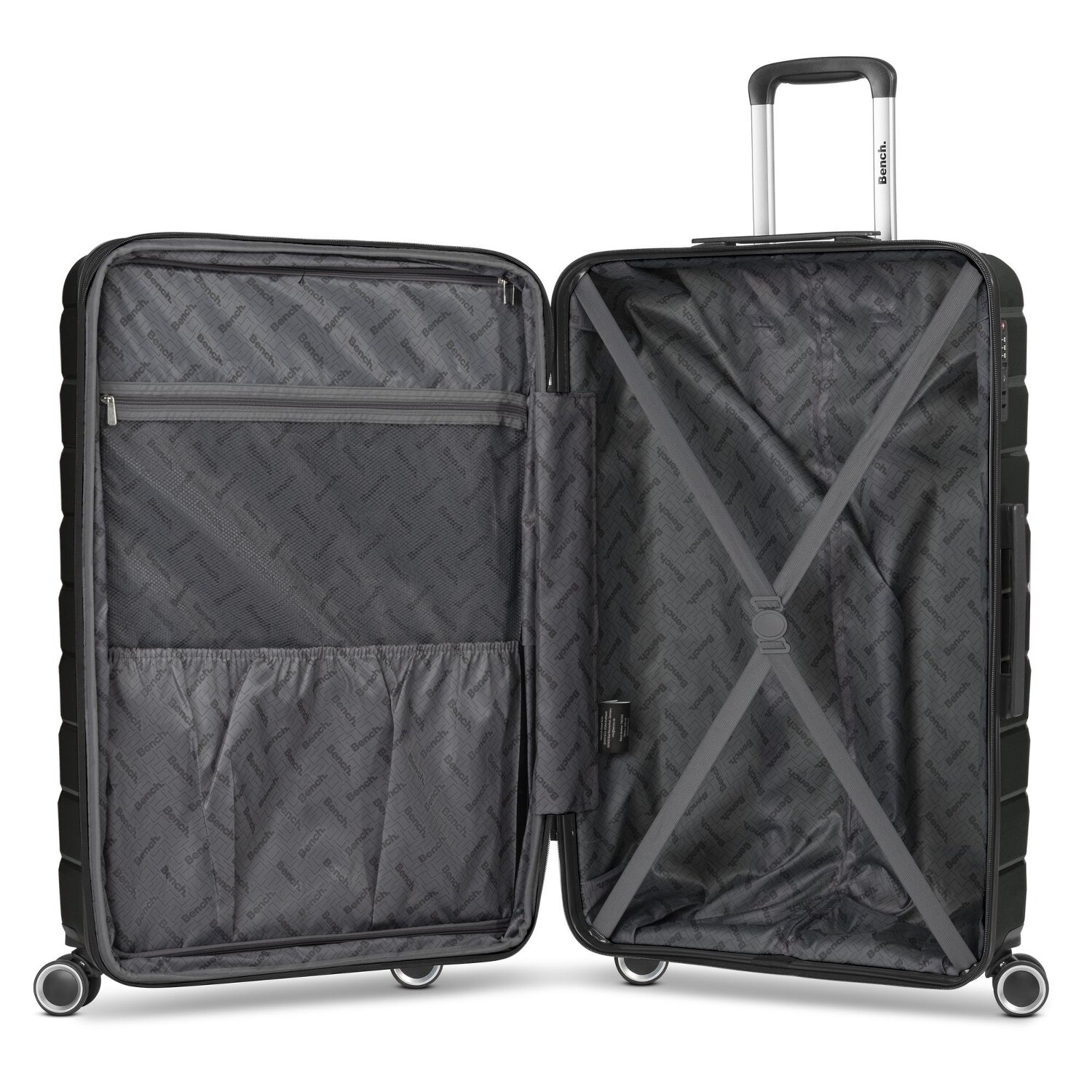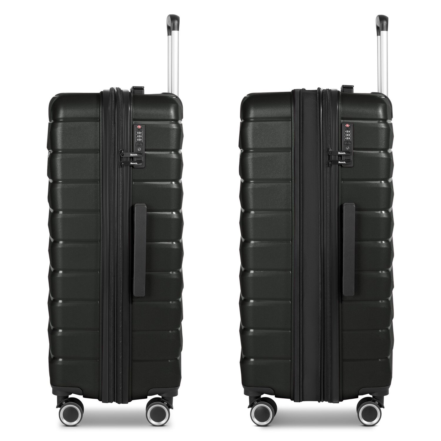 Heben Sie auf Ihrer nächsten Reise das Gepäckerlebnis mit dem Bench Paris Trolley hervor, der Härte mit 4-rolligem Komfort verbindet. Dieser innovative Trolley bietet eine Fülle von Features, darunter ein Wäschefach, eine Dehnfalte für zusätzlichen Platz und einen arretierbaren Griff für leichte Handhabung. Mit einem Kreuzpackgurt, Reißverschlussfach und internen Taschen ist Organisation am Flugsteig ein Kinderspiel. Der Tragegriff erleichtert das Heben in Überkopffaecher und der robuste Polypropylen-Koffer schützt Ihre Habseligkeiten. Klar nach vorne blickend, ist der Bench Paris Trolley die smarte Wahl für den modernen Reisenden. Holen Sie sich Ihr Exemplar noch heute! Dank der Dehnfalte lässt sich der Koffer auf eine Breite von 35 cm erweitern.