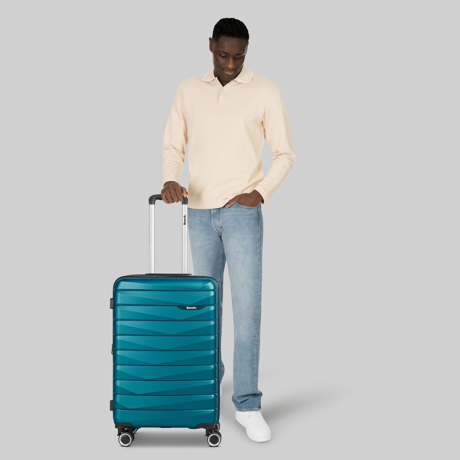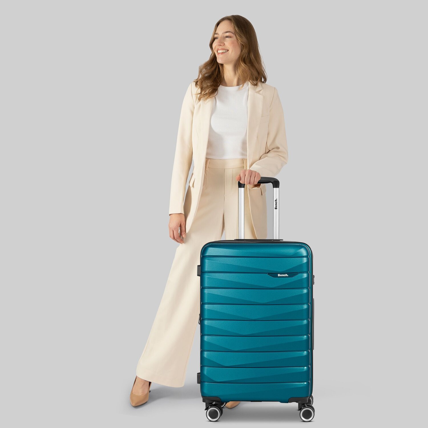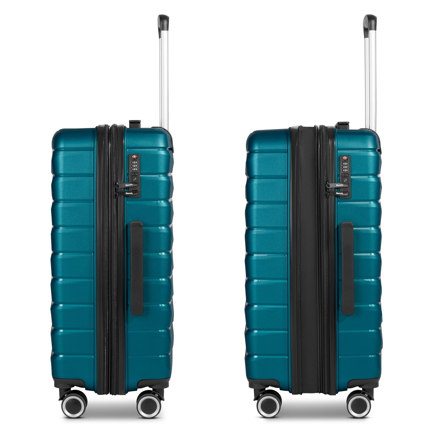 Stürzen Sie sich auf Abenteuer mit dem Bench "Trolley hart 4Rollen" aus der stilvollen Paris-Serie. Gebaut für die Reise - der widerstandsfähige und doch leichte Polypropylenkoffer ist beständig gegen alltägliche Stürze und Stöße. Mit charakteristischen Merkmalen wie Wäschefach, Dehnfalte, arretierbarem Griff, Reißverschlussfach und Innentaschen ausgestattet, bemühen wir uns um Ihren Komfort unterwegs. Der integrierte Tragegriff ist eine Bereicherung für Ihre Reiseerfahrung und bietet praktische Mobilität. Dieses Gepäckstück ist ein Beweis dafür, dass sich Außenhärte und Innenorganisation perfekt ergänzen können. Warten Sie nicht länger – dieses Stück ist ein Must-have für jeden reiselustigen Entdecker! Dank der Dehnfalte lässt sich der Koffer auf eine Breite von 32 cm erweitern.