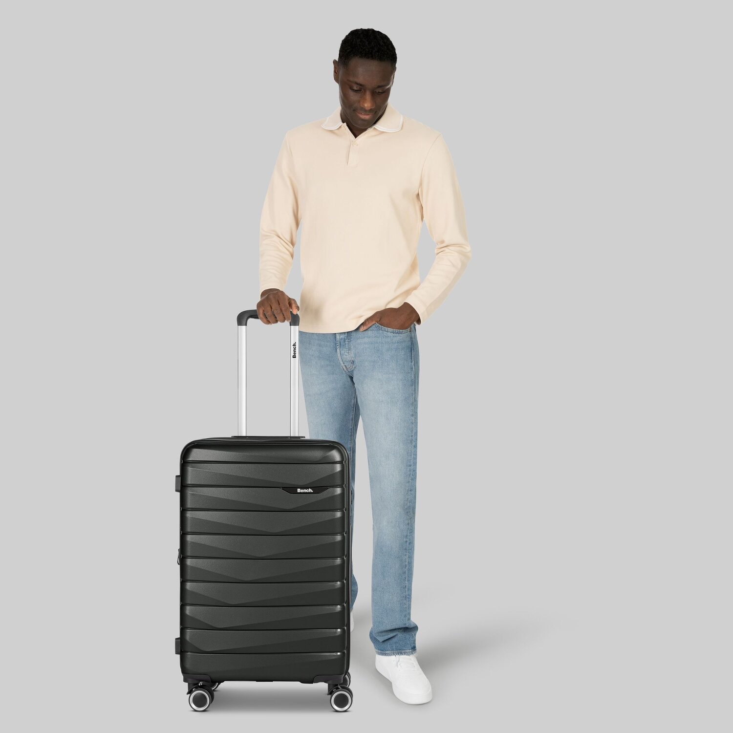 Stürzen Sie sich auf Abenteuer mit dem Bench "Trolley hart 4Rollen" aus der stilvollen Paris-Serie. Gebaut für die Reise - der widerstandsfähige und doch leichte Polypropylenkoffer ist beständig gegen alltägliche Stürze und Stöße. Mit charakteristischen Merkmalen wie Wäschefach, Dehnfalte, arretierbarem Griff, Reißverschlussfach und Innentaschen ausgestattet, bemühen wir uns um Ihren Komfort unterwegs. Der integrierte Tragegriff ist eine Bereicherung für Ihre Reiseerfahrung und bietet praktische Mobilität. Dieses Gepäckstück ist ein Beweis dafür, dass sich Außenhärte und Innenorganisation perfekt ergänzen können. Warten Sie nicht länger – dieses Stück ist ein Must-have für jeden reiselustigen Entdecker! Dank der Dehnfalte lässt sich der Koffer auf eine Breite von 32 cm erweitern.