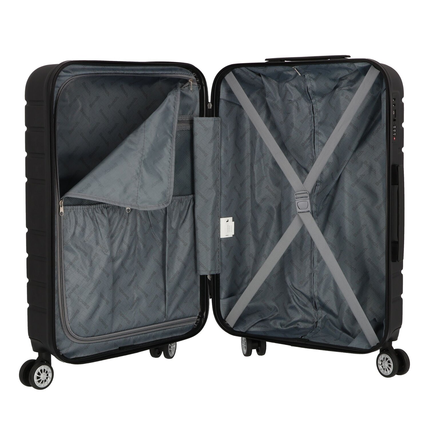 Praktisches Kofferset von Bench aus strapazierfähigem ABS. Die Koffer sind jeweils mit einem Raumteiler, einem Kreuzpackgurt und Taschen innen ausgestattet und verfügen zudem über TSA-Schloss für sicheres Reisen. Die geräuscharmen Rollen sowie ein arretierbarer Griff machen jede Reise komfortabel. - Maße: 37 cm x 22 cm x 55 cm / 42 cm x 28 cm x 69 cm / 48 cm x 28 cm x 79 cm - Volumen: 32 L / 58 L / 92 L - Gewicht: 2,90 kg / 3,50 kg / 4,25 kg