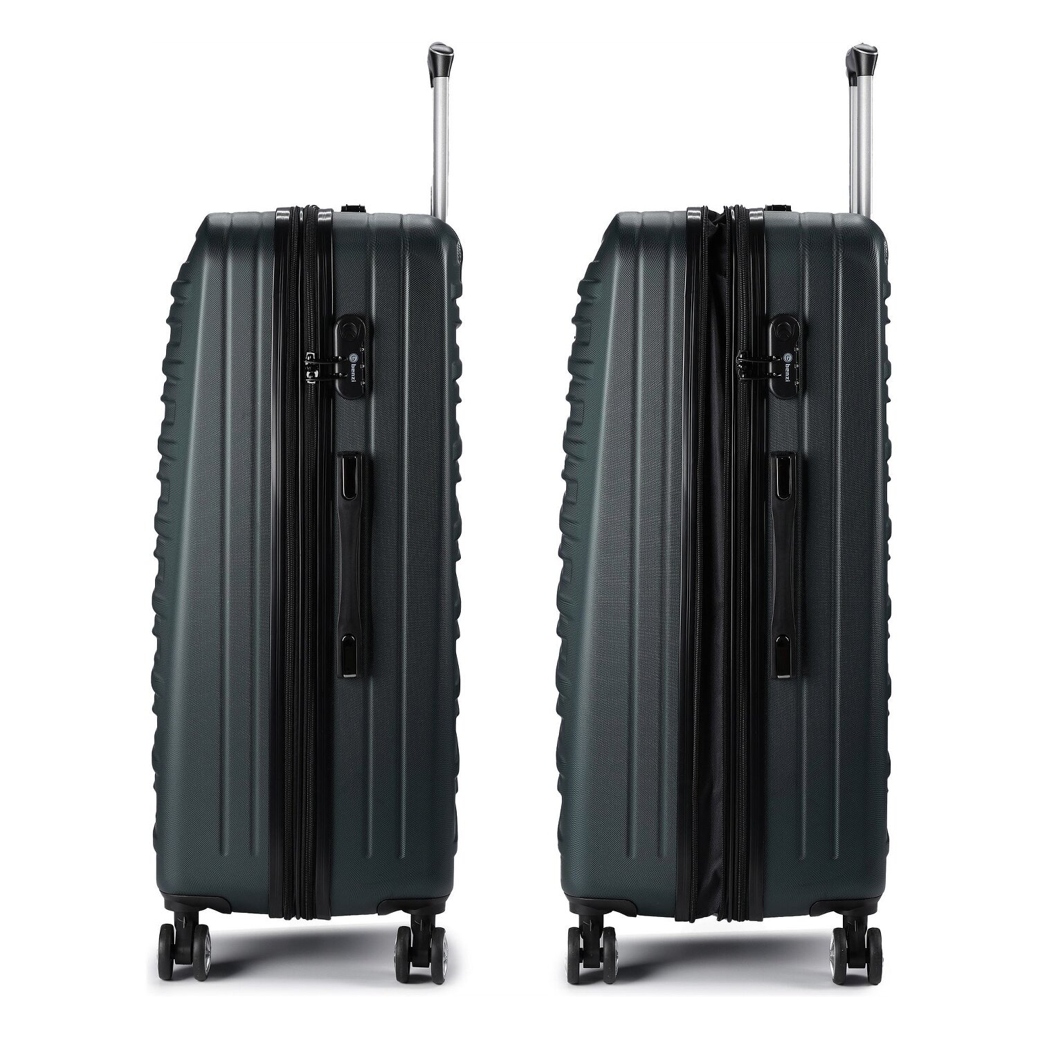 Mit dem Hartschalenkoffer der Benzi-Serie 5493 kommt eine neue Ära des stressfreien Reisens. Raffinierte Details wie eine integrierte Dehnfalte, ein geräumiges Wäschefach, ein praktischer Kreuzpackgurt und ein ausdauerndes Netzfach sorgen für Ordnung und Komfort. Der leicht zu bedienende, arretierbare Griff und einen zusätzlichen Tragegriff machen das Manövrieren zum Kinderspiel. Hergestellt aus besonders strapazierfähigem ABS, ist der Koffer der ideale Begleiter für alle Abenteurer. Und dank des integrierten TSA-Schlosses sind Ihre Habseligkeiten stets sicher verwahrt. Tauchen Sie in die Welt des stressfreien Reisens mit Benzi ein! Dank der Dehnfalte lässt sich der Koffer auf eine Breite von 28 cm erweitern.