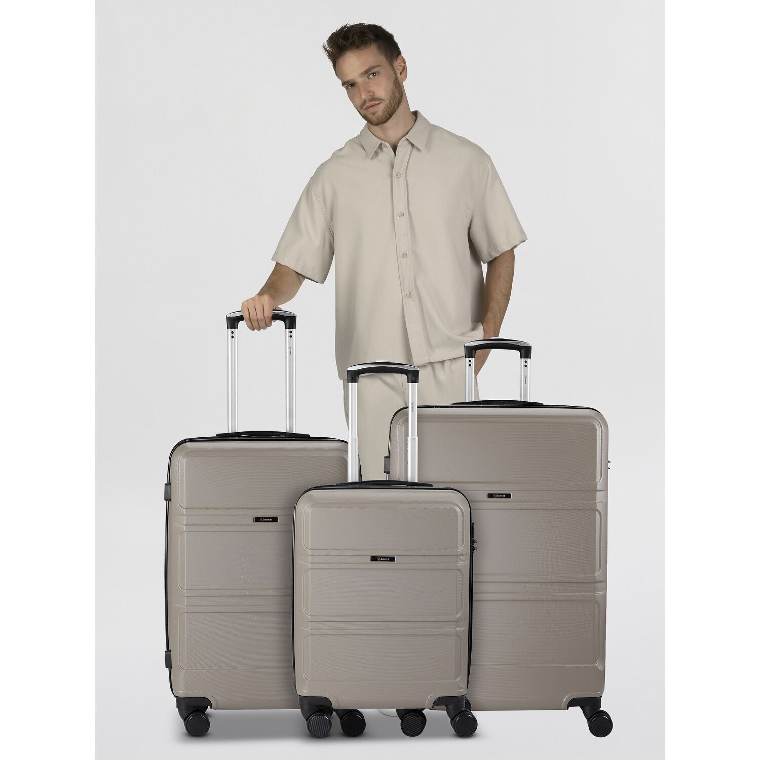 Bereit für den nächsten Urlaub mit dem 3-teiligen Kofferset aus der 5739 Serie von Benzi. Ausgestattet mit 4 geschmeidigen Rollen, bietet es hohen Komfort auf jeder Reise. Das Hauptfach, mit präzise gearbeitetem Wäschefach und Kreuzpackgurt, sorgt für Ordnung, während das zusätzliche Netzfach noch mehr Stauraum gewährt. Besonders hervorzuheben ist der arretierbare Griff, der ergonomisch designt eine einfache Handhabung garantiert. Gefertigt aus robustem und langlebigem ABS sind die Koffer für jedes Abenteuer gewappnet. Mit einem eingegliederten TSA-Schloss ist das Set qualitativ hochwertig und sicher. Maße: 48 cm x 26 cm x 72 cm / 42 cm x 24 cm x 66 cm / 37 cm x 20 cm x 55 cm - Volumen: 81 L / 60 L / 37 L - Gewicht: 3,77 kg / 3,1 kg / 2,5 kg. Flugzeugtauglich, reisefertig und stilsicher - so sollte das nächste Reiseabenteuer beginnen!