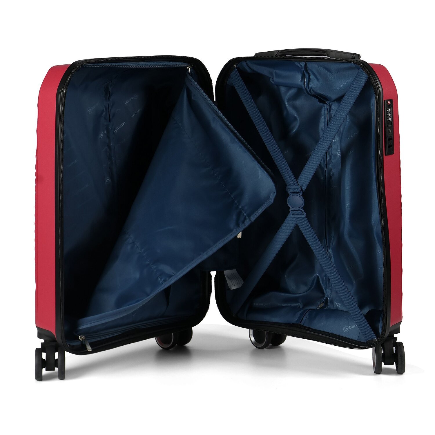Wer sagt, dass Reisen unbequem sein müssen? Der Kabinentrolley mit 4 Rollen der Marke Benzi, aus der Serie 5755, bringt Komfort und Stil auf jedes Terminal.Geschickt organisierte Innenfächer wie Wäschefach, Kreuzpackgurt und Netzfach sorgen für ein leichtes Packen. Der arretierbare Griff und innenliegende Taschen versprechen Tragekomfort und Sicherheit. Strapazierfähiges Polypropylen schützt Ihre Reisebegleiter und übersteht auch turbulente Reisen. Das TSA-Schloss bietet XL-Sicherheit. Mit den Tragegriffen wird jeder Transfer zum Kinderspiel. Dieser Trolley ist mehr als nur ein Gepäckstück - er ist ein Reisepartner.