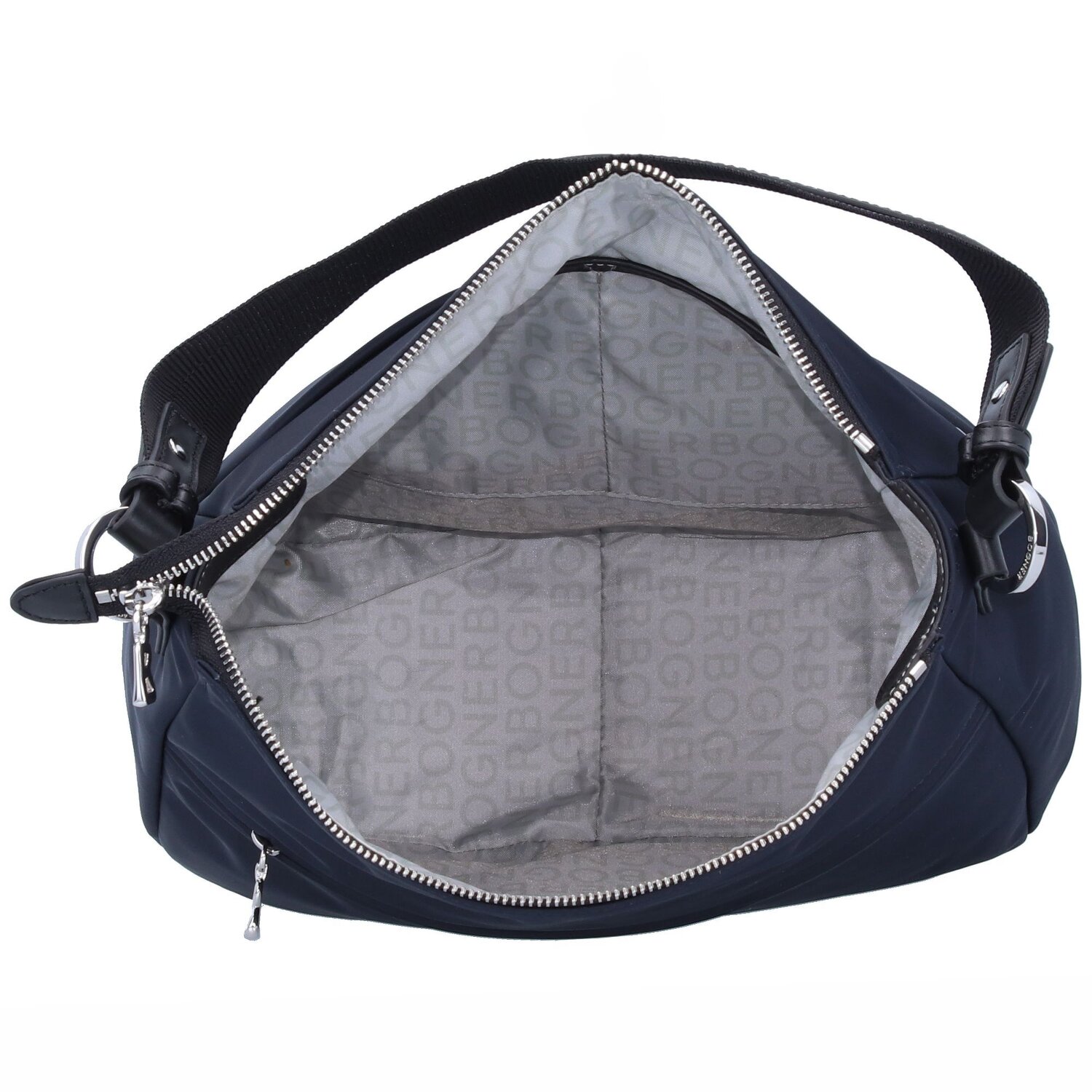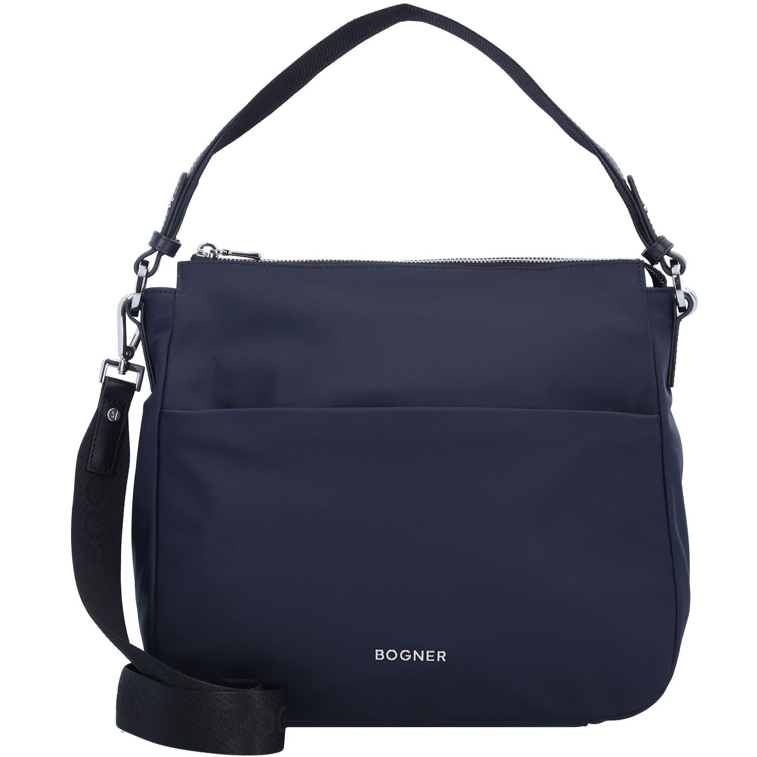 Schöne Schultertasche von Bogner mit einem geräumigem Hauptfach sowie zwei Steckfächer und ein Reißverschlussfach im Inneren. Die Reißverschlussfächer auf der Vorder- und Rückseite sorgen für zusätzlichen Stauraum. Diese Tasche ist schlicht aber trotzdem ein echter Hingucker.