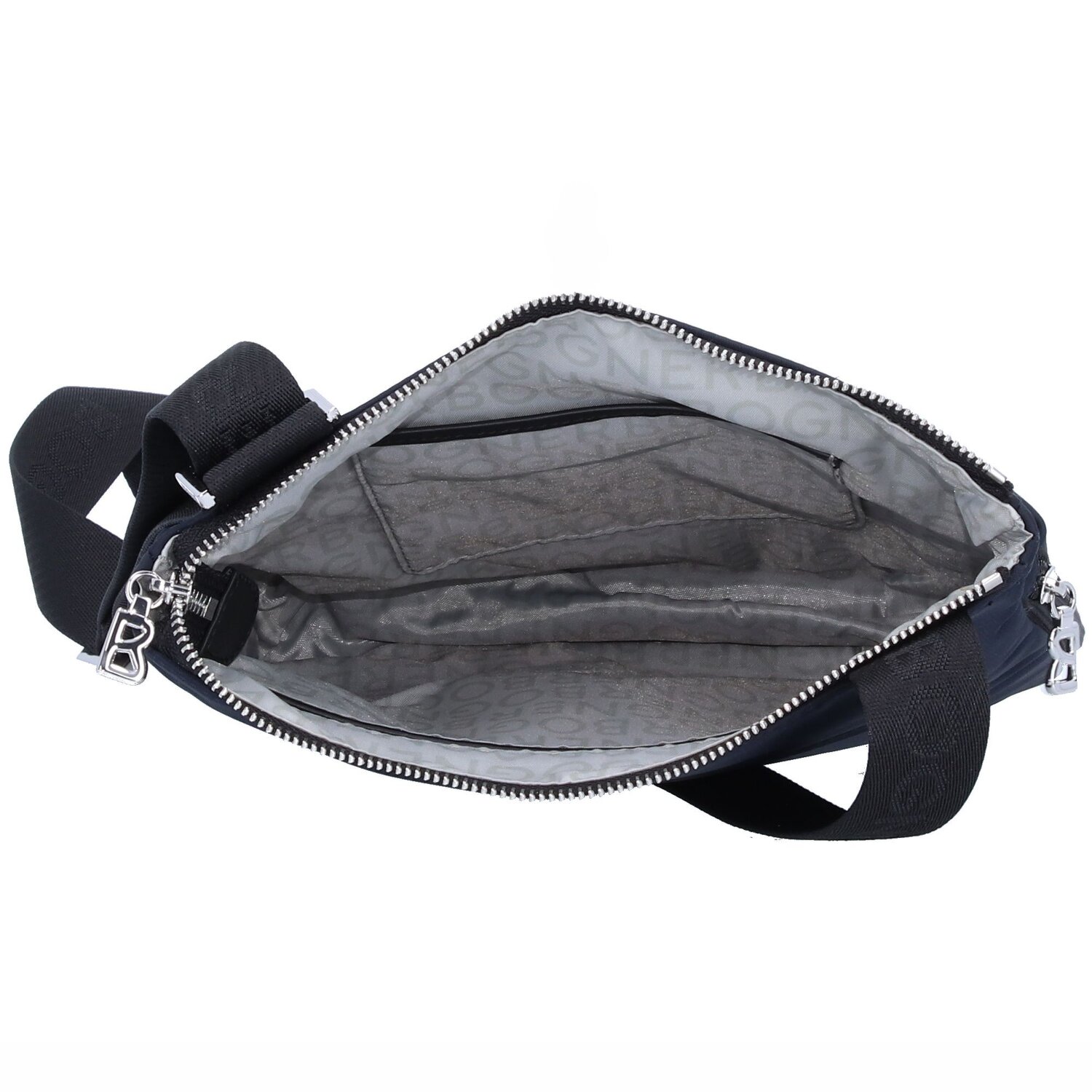 Praktische Umhängetasche der Marke Bogner aus strapazierfähigem Nylon. Die Tasche besticht durch ihr klares Design, ihre Funktionalität und ihre hochwertige Verarbeitung. Sie verfügt über ein geräumiges Hauptfach sowie einem Reißverschlussfach und ein Handyfach im Inneren sowie zwei Reißverschlussfächer auf der Vorder- und Rückseite für zusätzlichen Stauraum. Der abnehmbare Umhängeriemen lässt sich einfach und bequem verstellen.