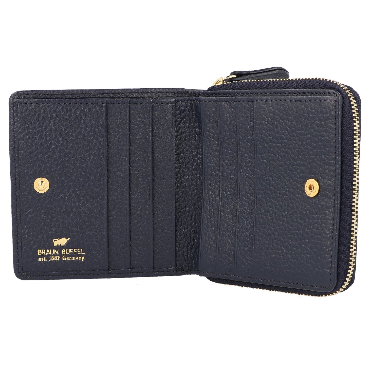 Die hochwertige Damengeldbörse der Asti-Serie von Braun Büffel aus weichem, genarbtem Rindleder. Diese Serie zeichnet sich durch zeitloses Design und hohe Funktionalität aus. Der Geldbeutel liegt angenehm und sicher in der Hand und bietet viel Platz für Karten, Bargeld und Münzen. Durch ihr praktisches Format passt die Börse auch in kleinere Handtaschen. Mit RFID-Technologie gegen Datendiebstahl ausgestattet.