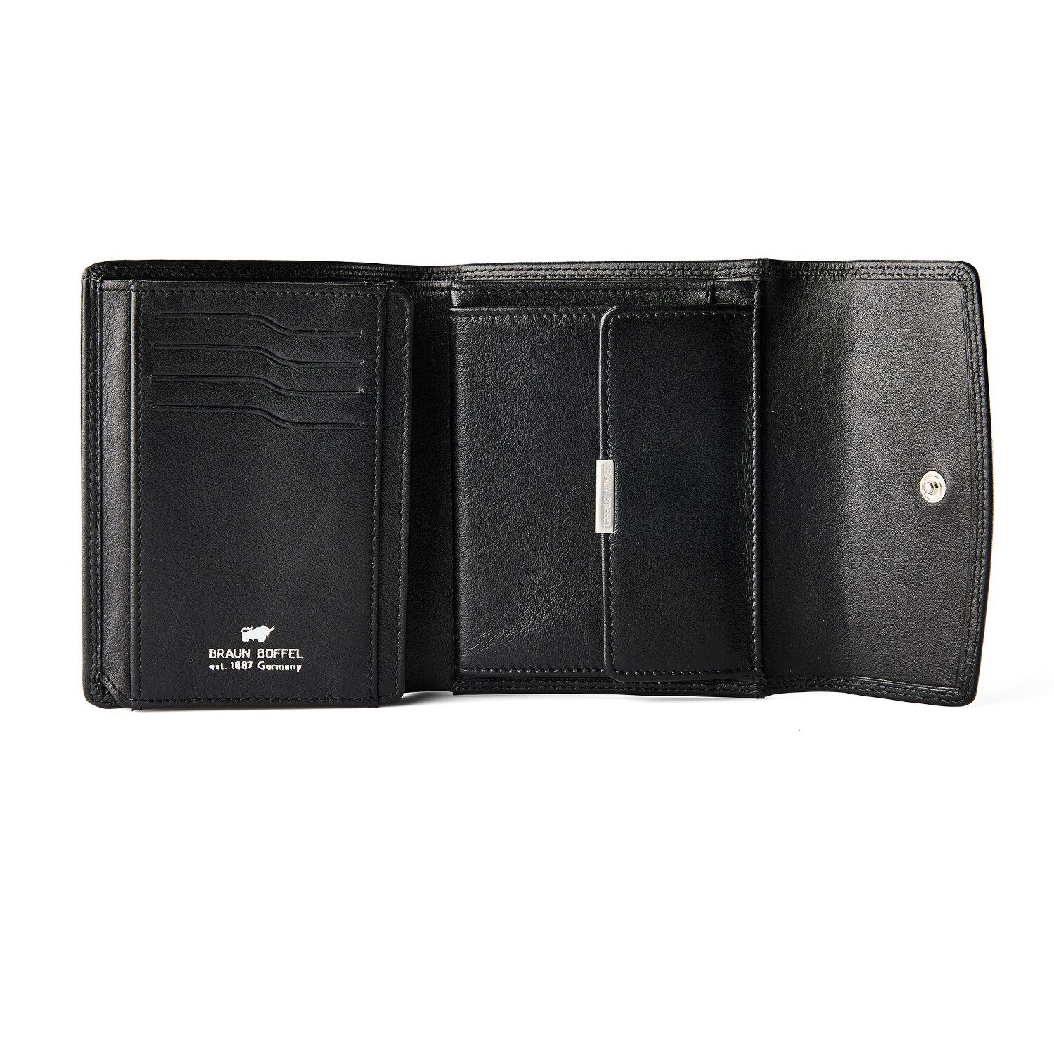 Erstklassige Eleganz trifft auf funktionales Design in der Damengeldbörse quer von Braun Büffel in der Golf 3.0 Serie. Diese Brieftasche bietet acht Kreditkartenfächer, ein Münzfach, ein Scheinfach, fünf Steckfächer und ein Ausweissfach - alle ist sicher unter einem Druckknopf-Verschluss. Gefertigt aus hochwertigem Leder, verströmt sie einen Hauch von Luxus bei jedem Gebrauch. Das zusätzliche Highlight: Sie bietet einen RFID-Schutz, der Ihre persönlichen Daten vor unautorisiertem Scannen sichert. Gönnen Sie sich dieses Meisterwerk der Handwerkskunst voller Stil und Sicherheit!