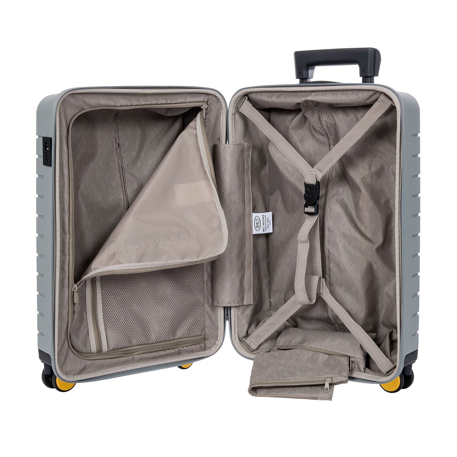 Stylischer Kabinentrolley von Bric's der Ulisse Serie aus robustem Polypropylen mit vier leisen Rollen und arretierbarem Griff. Das Hauptfach mit Packgurt und Hemdenfach bietet genug Platz für einen Wochenendausflug oder kann bei den meisten Fluggesellschaften auch als Handgepäck mitgenommen werden.