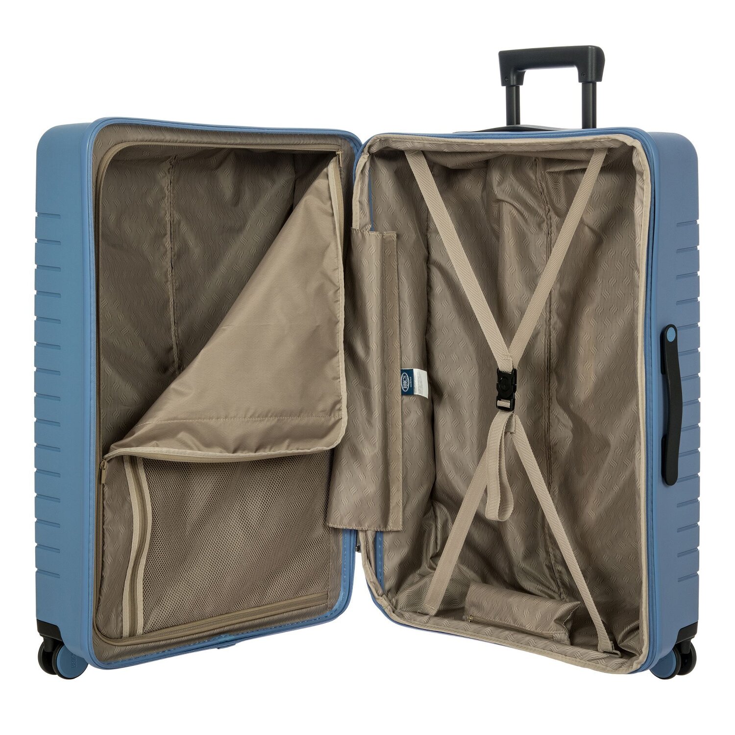 Designstarker und farbenfroher 4-Rollen Trolley von Bric's der BY Ulisse Serie aus widerstandsfähigem Polypropylen. Der Trolley verfügt über ein geräumiges Hauptfach mit einem Kreuzpackgurt, sowie ein separat bepackbares Reißverschlussfach mit Netzfach und bietet viel Platz für ihr Gepäck. Das Volumen des Hauptfachs ist außerdem durch die Dehnfalte erweiterbar. Zusätzlich ist der Trolley mit einem herausnehmbaren Schuh- und Wäschebeutel ausgestattet. Vier geräuscharme und in alle Richtungen bewegliche Doppelrollen, arretierbarer Griff und ein integriertes TSA-Schloss für zusätzliche Sicherheit runden den Trolley ab.