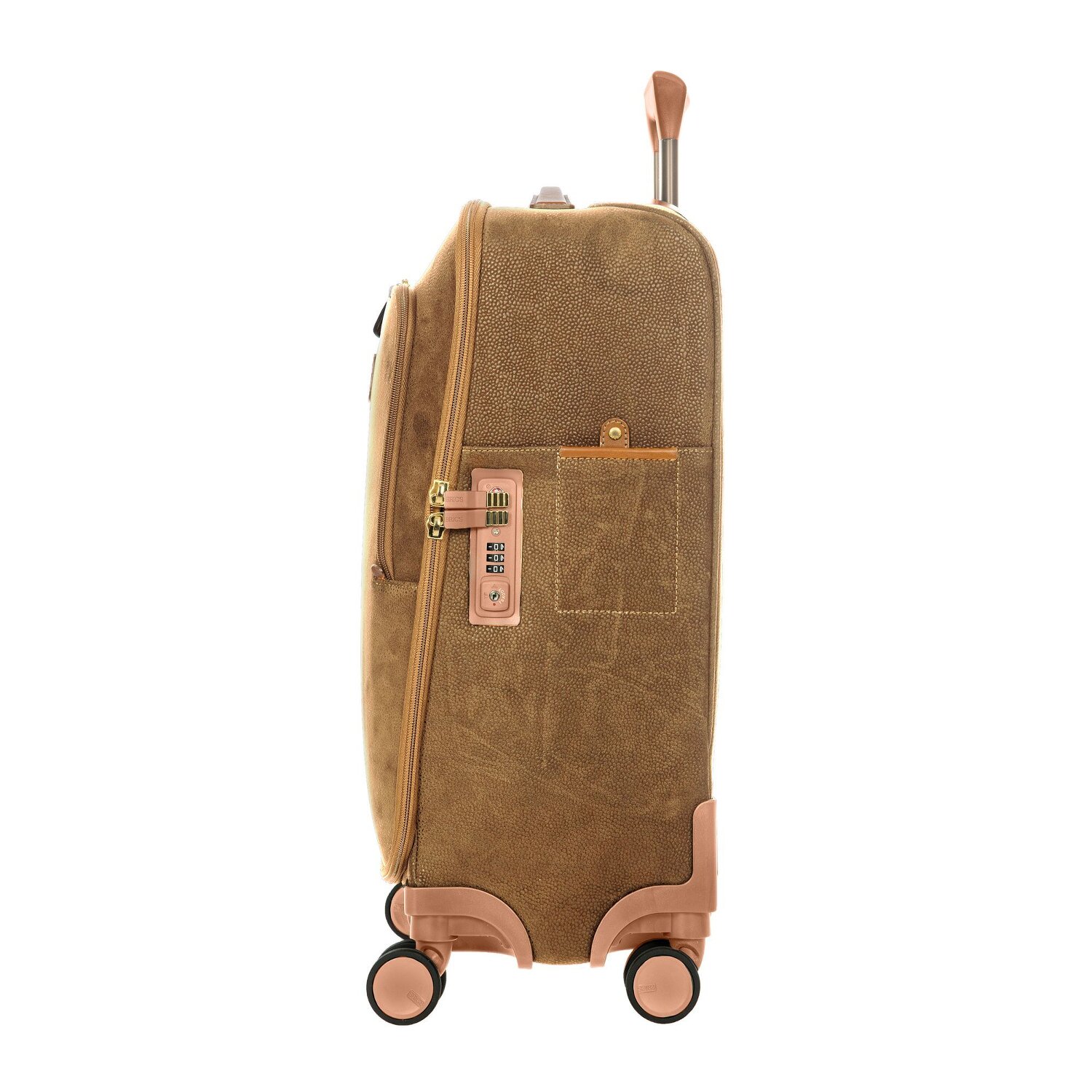 Designstarker Kabinentrolley der Marke Bric's aus robustem Material in Wildlederoptik mit Details aus Leder, 4 Rollen und arretierbarem Teleskopgriff. Der Trolley überzeugt durch seine hohe Verarbeitungsqualität und verfügt über ein geräumiges Hauptfach mit Packriemen und ein Reißverschlussfach sowie über zwei weitere Fächer auf der Vorderseite für Ordnung und Übersicht. Der ideale Begleiter auf Reisen.