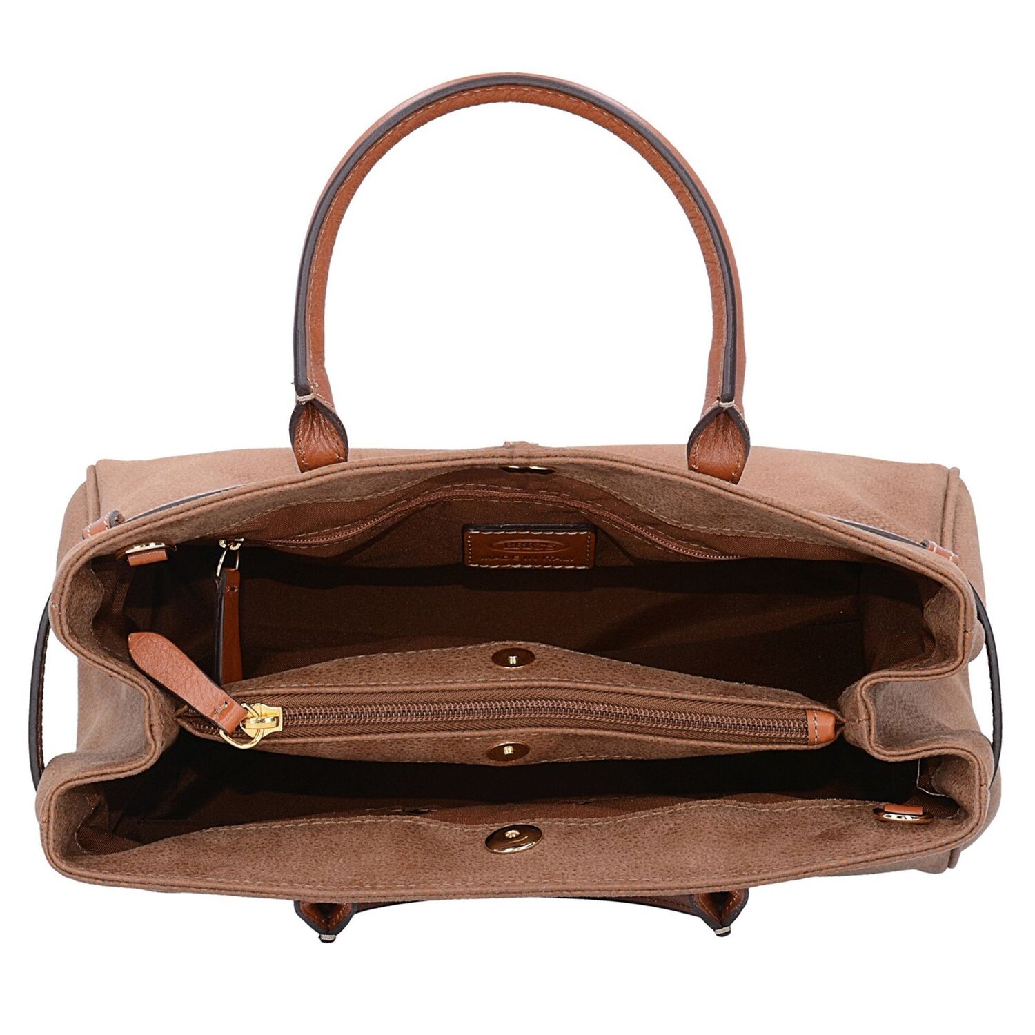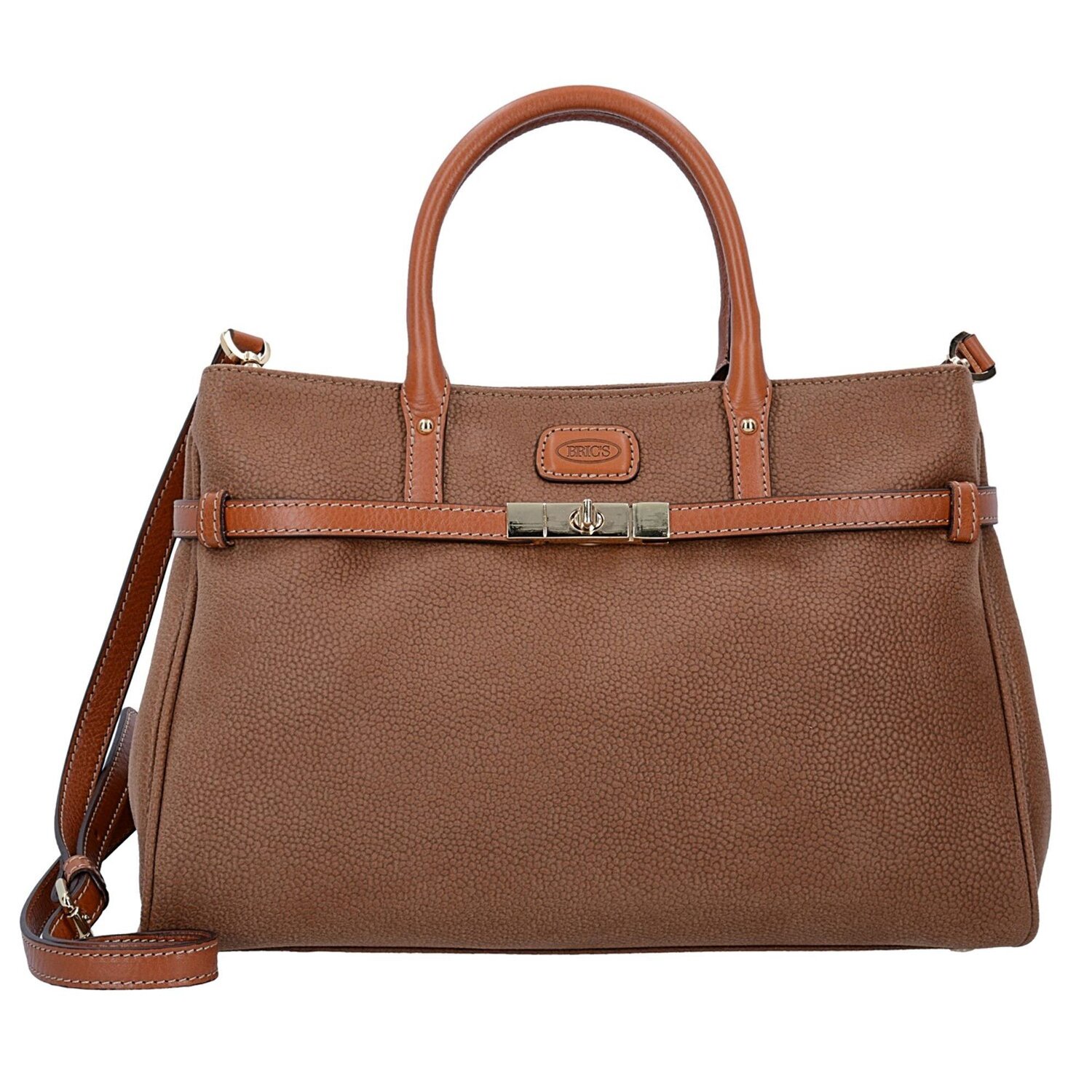 Bric's Life I Henkeltasche aus hochwertigem Kunstleder in Wildlederoptik mit Details aus Echtleder, verstellbarem Umhängeriemen und goldfarbenen Bodennägeln. Mit dieser Tasche perfektionieren Sie jedes Outfit.