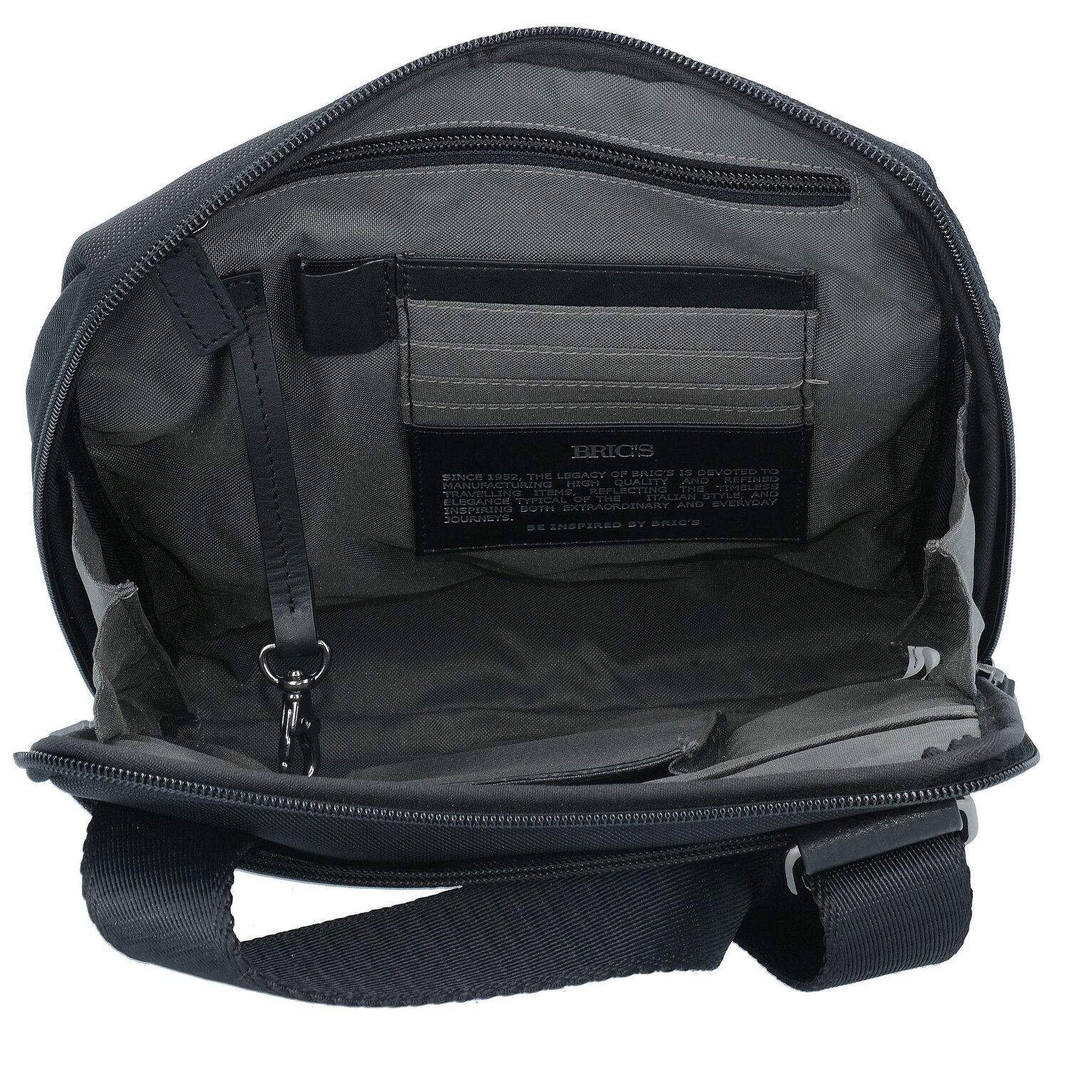 Bric's Umhängetasche aus Nylon mit Echtleder abgesetzt. Die Tasche besticht durch ihr zeitloses Design.