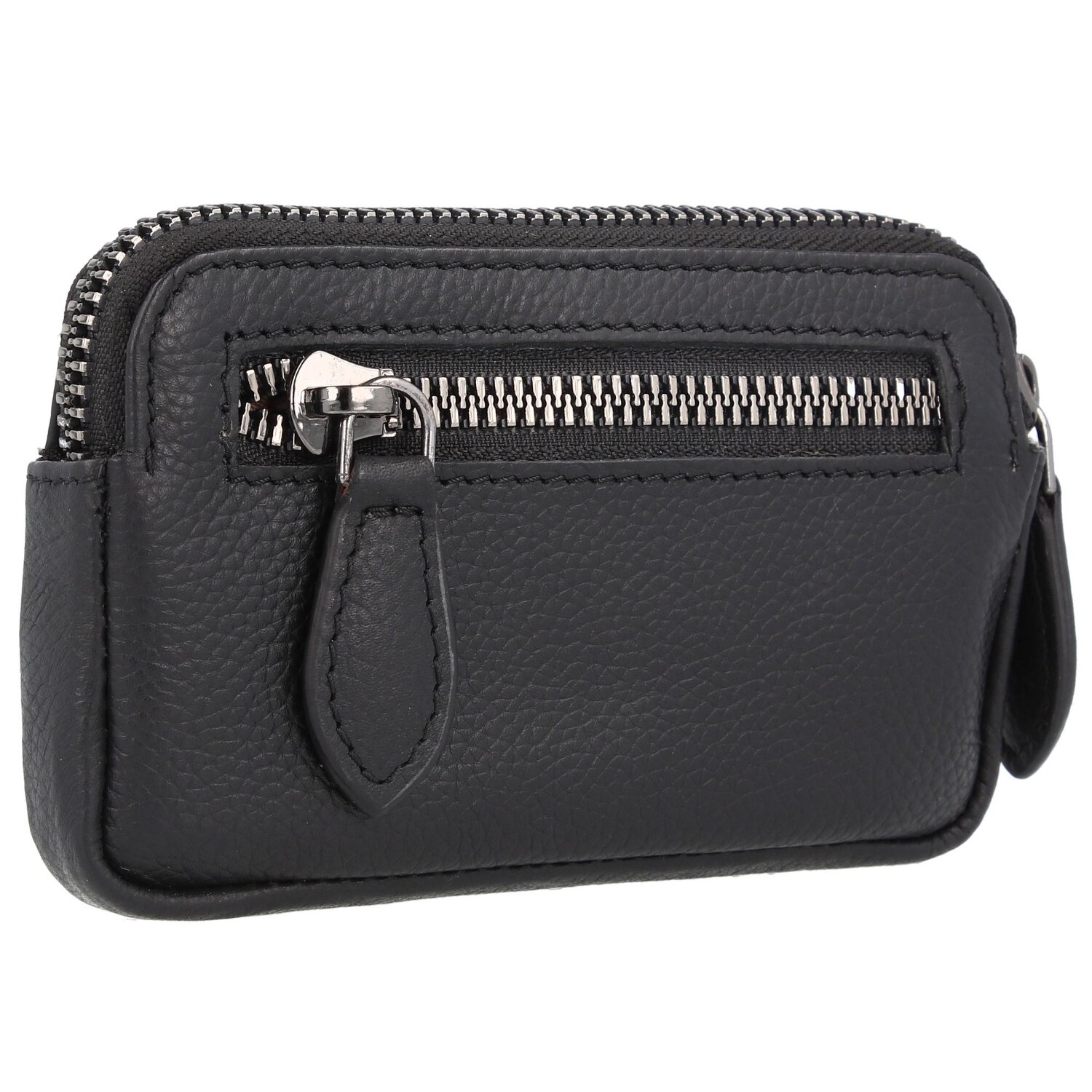 Praktisches Schlüsseletui von bugatti aus hochwertigem Leder inkl. zwei Ringe sowie einem Reißverschlussfach auf der Rückseite.
