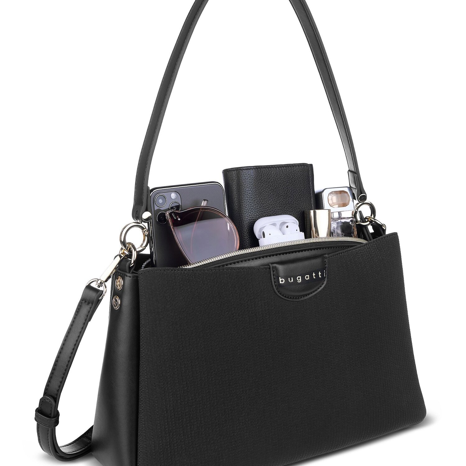 Erfahren Sie die neue Dimension der Eleganz mit der Bugatti Leah Schultertasche. Die Tasche ist aus hochwertigem Polyurethan gefertigt, das robust, doch charmant wirkt und ein Statement zu Ihrem Stil hinzufügt. In den Innentaschen finden alle Ihre Accessoires versteckte Orte, während der Reißverschluss einen bequemen und sicheren Zugang zu allen Ihren Notwendigkeiten ermöglicht. Das hervorstechende Merkmal ist der abnehmbare, verstellbare Umhängeriemen. Mit einer mittellangen Hauptleine kann die Tasche je nach Bedarf und Stilvarianz individuell angepasst werden. Vermitteln Sie mit dieser Tasche Exklusivität und erfinden Sie Ihren Stil neu. Sichern Sie sich jetzt Ihre Bugatti Leah.