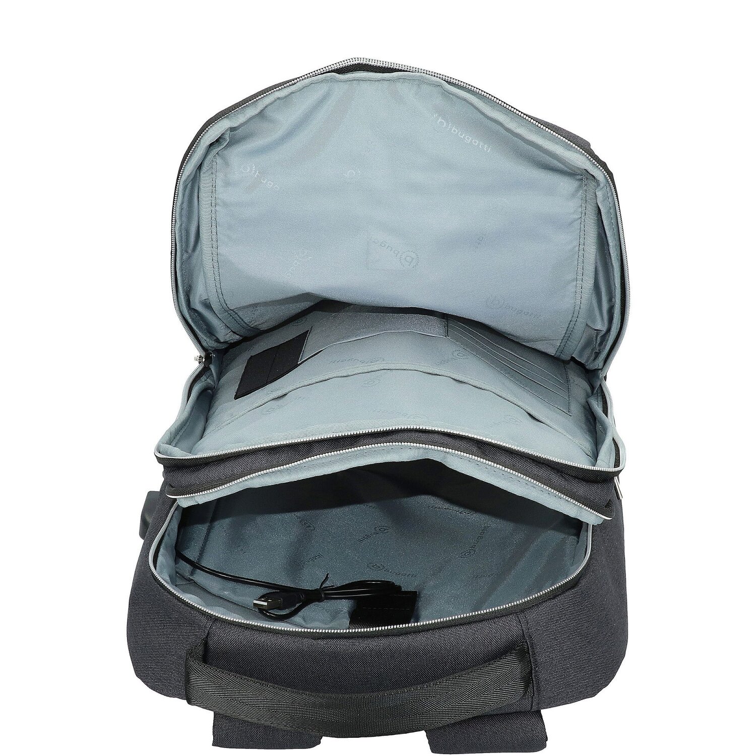 Der ultraleichte, innovative Businessrucksack von Bugatti bietet dank zahlreicher Fächer für Unterlagen, Wertsachen, Handy, Kabel und mehr eine optimale Übersicht. In dem gepolsterten Laptopfach findet Ihr Gerät einen sicheren Platz. Weitere Highlights sind ein Geheimfach an der Rückseite und nicht zu vergessen der RFID-Schutz gegen Datendiebstahl.
