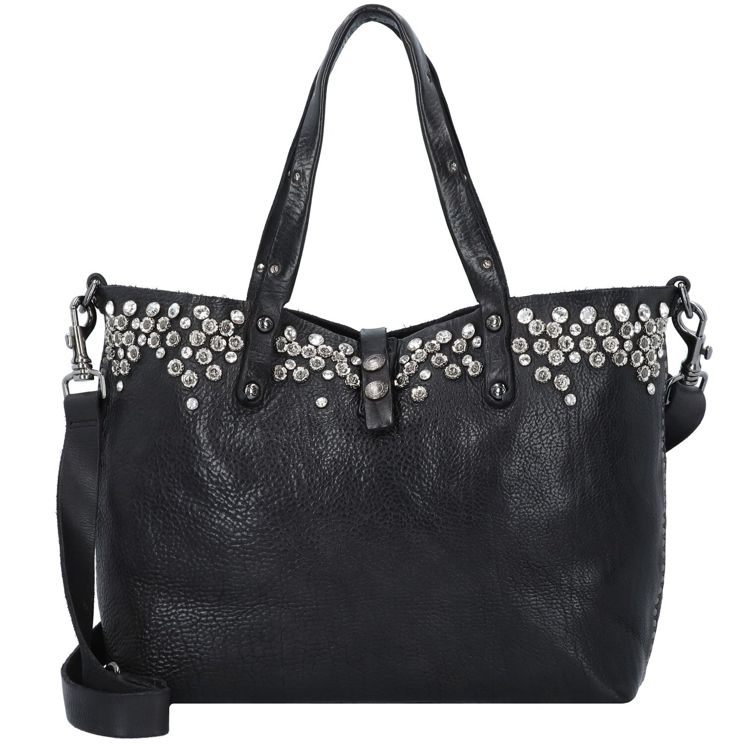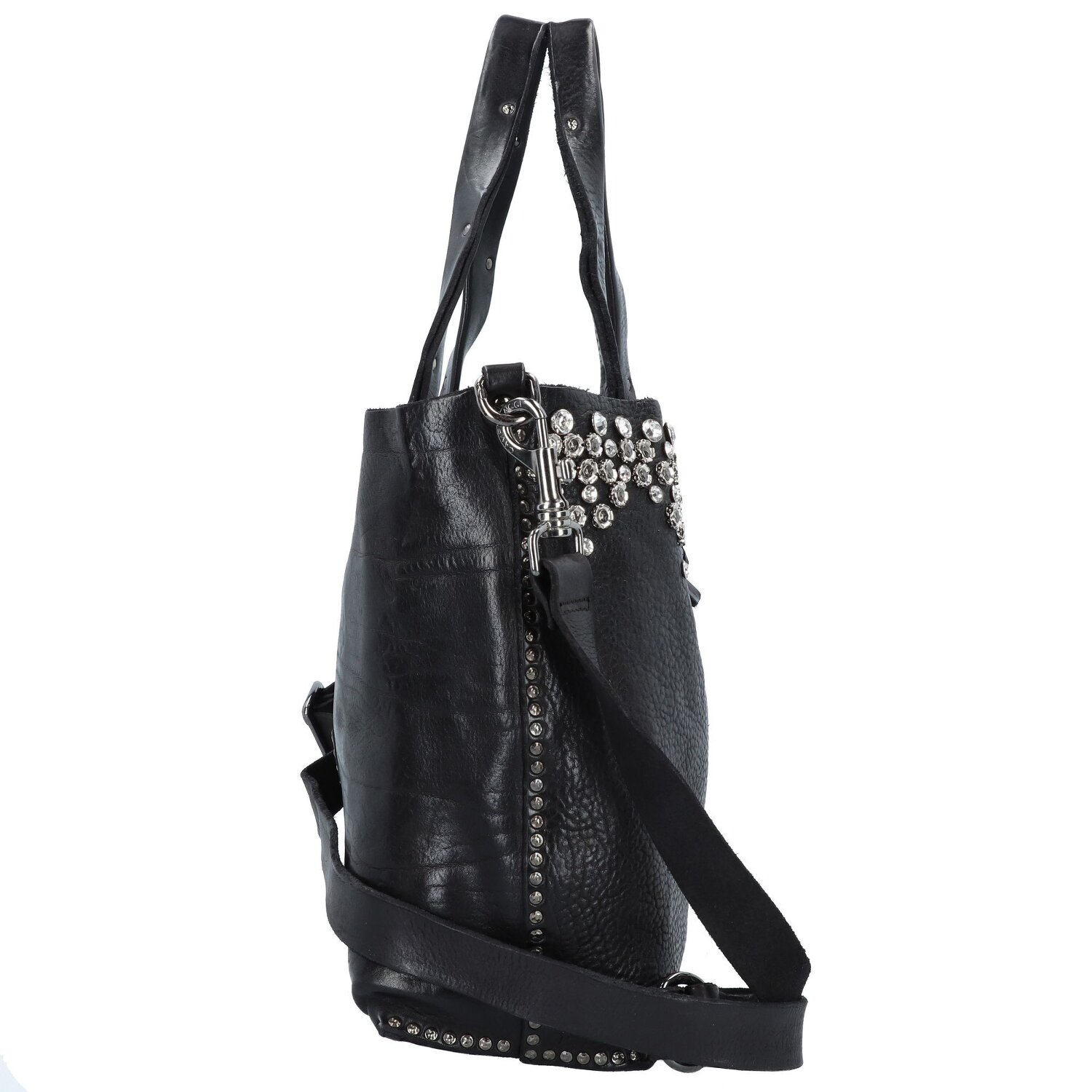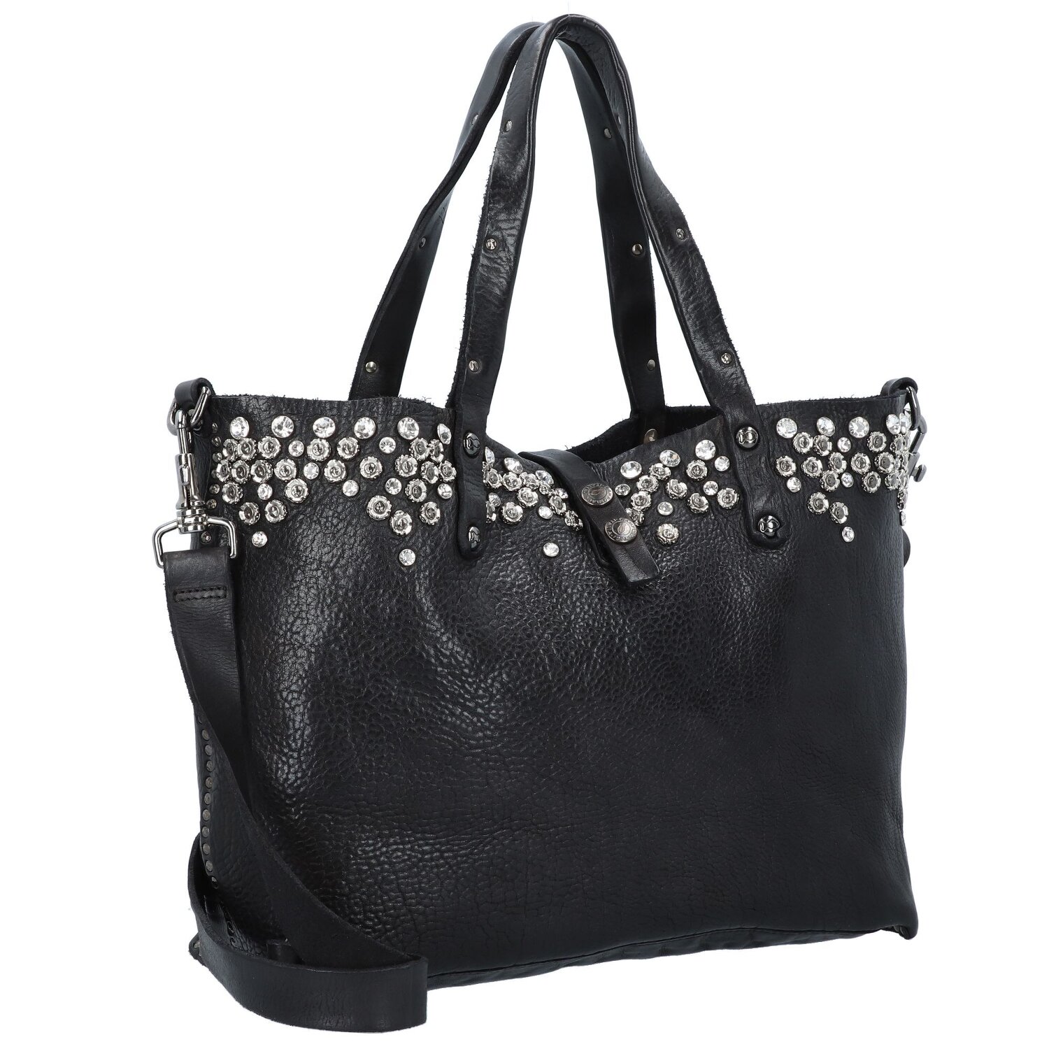 angesagte Campomaggi Bella di Notte Shopper Tasche aus hochwertigem Leder 36 cm mit funkelnder Nietenverziehrung