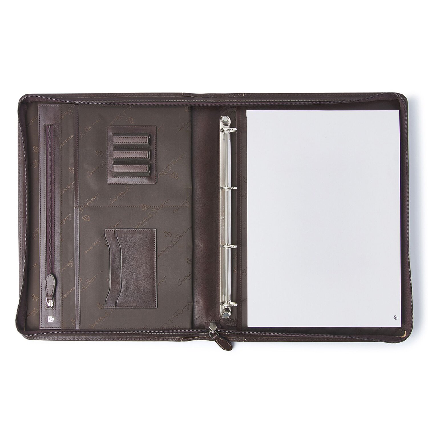 Die wunderschöne Schreibmappe von Castelijn & Beerens aus Leder verfügt über einen Platz für einen A4 Schreibblock, eine Stiftelasche, Kredit- und Visitenkartenfächer, ein Fach für weitere Dokumente und wird mit einem Reißverschluss geschlossen. (Ausstattungen auf den Bildern wie Handys, Schreibblöcke etc. sind nicht enhalten.)