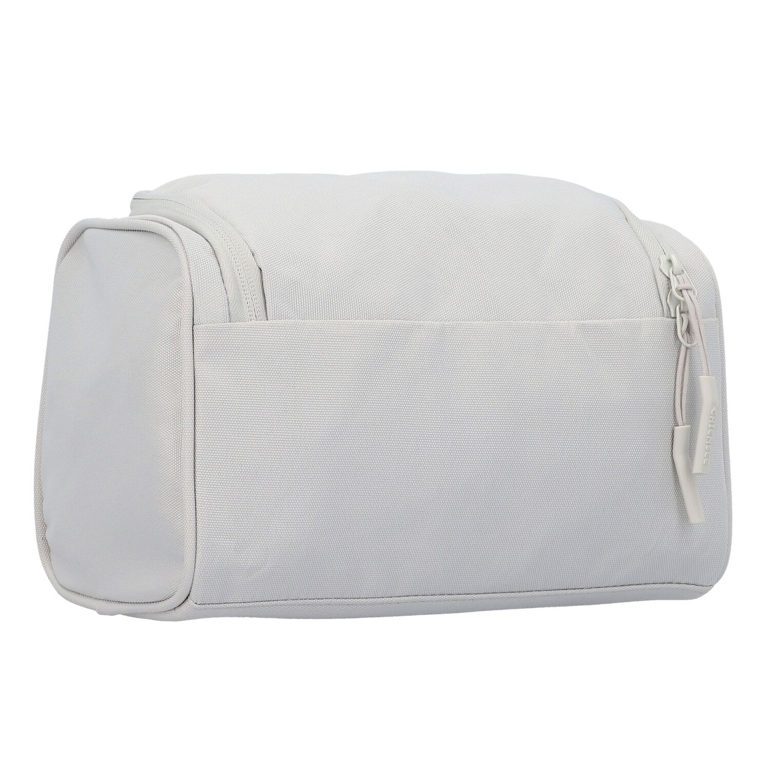 Kulturtasche aus recyceltem PET hergestellt mit praktischer Handschlaufe für unterwegs. Zusätzlich verfügt sie über ein Innen- und Außenfach mit Reißverschluss und ein Steckfach. Dank des Aufhängers kann die Tasche bequem an Türhaken oder Handtuchhaltern gehängt werden.