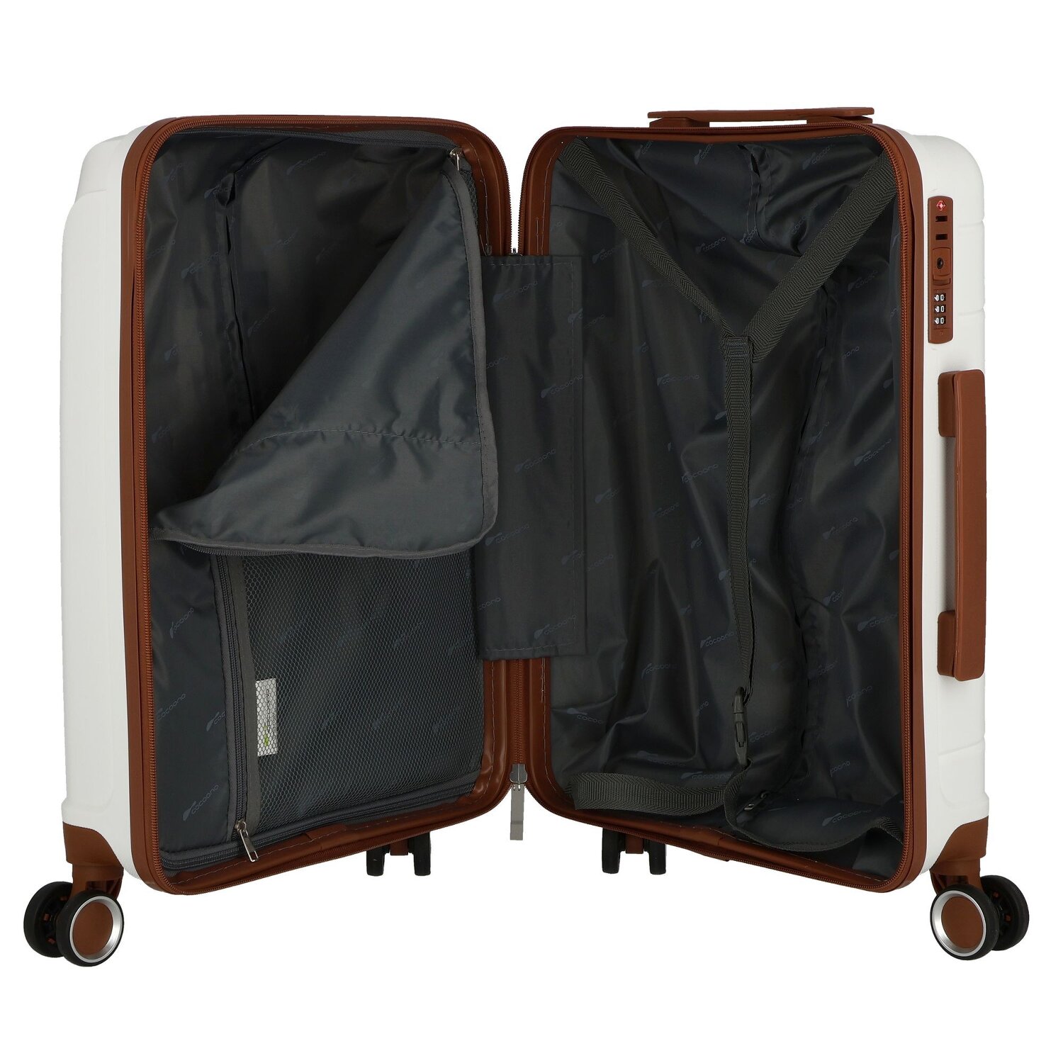 Entdecken Sie den Cocoono Kabinentrolley aus robustem Polypropylen – perfekt für Damen, Herren, Vielflieger und Globetrotter. Innen bietet er ein Wäschefach, einen Kreuzpackgurt und ein Reißverschlussfach für optimale Organisation. Außen verfügt er über zwei Tragegriffe für bequemes Tragen. Die Besonderheiten umfassen ein TSA-Schloss für Sicherheit und einen eingravierten Cocoono-Schriftzug auf der Front. Ein stilvoller und funktionaler Begleiter für Ihre nächste Reise.