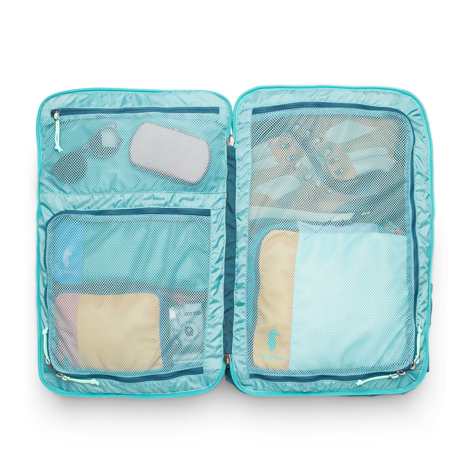 - Ausstattung: Wäschefach, Trinkflaschenfach, Tasche(n) innen, Tasche(n) außen, Rückenpolsterung, Netzfach, Brustgurt, Beckengurt, auf Trolley steckbar