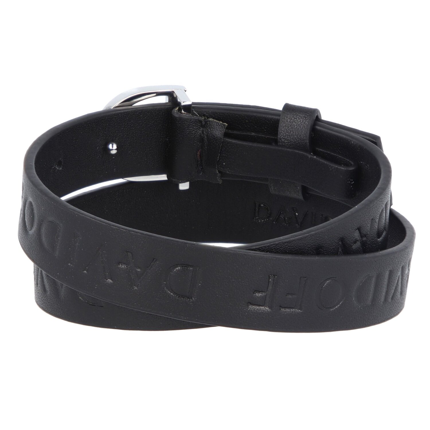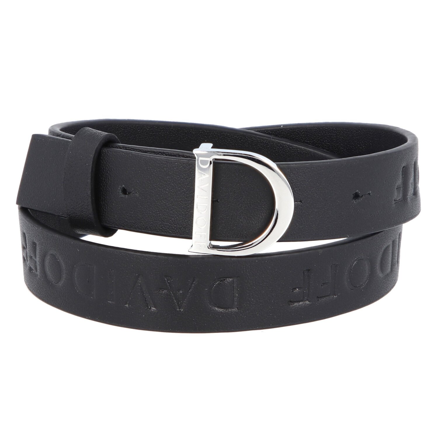 Armband aus Leder mit Prägung der Marke Davidoff. Das Armband hat eine Gesamtlänge von 45 cm, wird aber doppelt um das Handgelenk gewickelt. Durch die Dornschließe in D-Form lässt es sich einfach öffnen kann in der Länge angepasst werden. Das perfekte Accessoire für den modernen Mann.