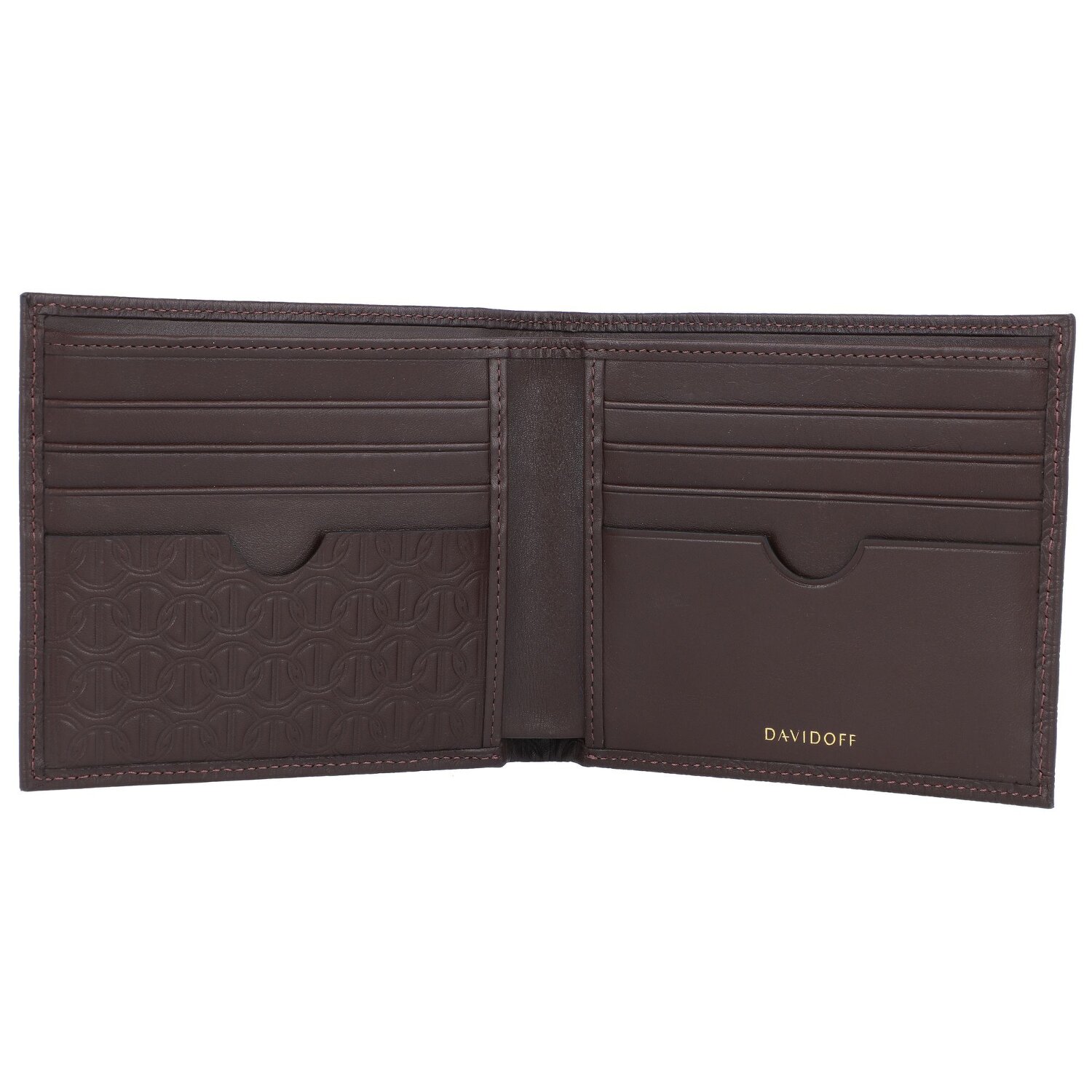 Luxuriöse Geldbörse von Davidoff aus weichem italienischem Kalbsleder mit stylischer Allover-Logo-Prägung. Die Börse besticht durch ihr modernes, elegantes Design und ihre hohe Verarbeitungsqualität und bietet viel Stauraum für Ihre Geldscheine und Kreditkarten. Der treue Begleiter für den stilbewussten Mann.