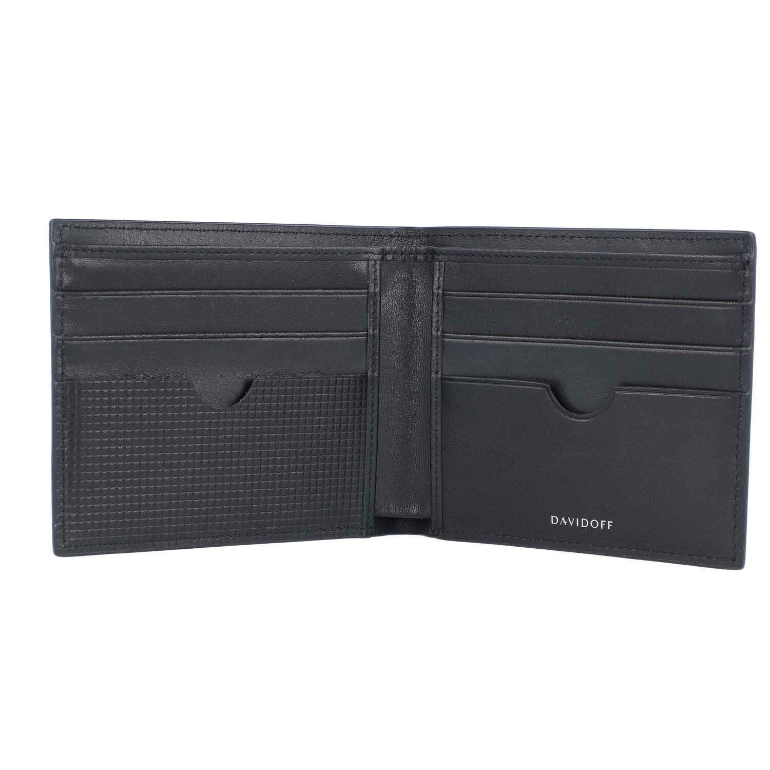 Luxuriöse Geldbörse von Davidoff aus weichem Kalbsleder mit filigraner "Clou de Paris"-Prägung. Die Börse besticht durch ihr modernes, elegantes Design und ihre hohe Verarbeitungsqualität und bietet viel Stauraum für Ihre Geldscheine und Kreditkarten. Der treue Begleiter für den stilbewussten Mann.