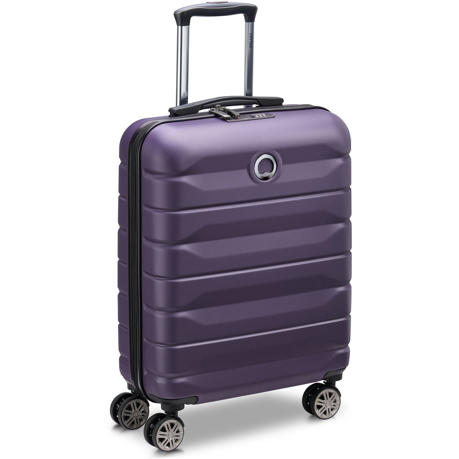 Robuster Kabinentrolley von Delsey aus widerstandsfähigem ABS. Das geräumige Hauptfach bietet viel Platz und ist dank des Raumteilers und des Kreupackgurts gut organisiert. Mit den 4 Leichtlaufrollen ist der Koffer besonders flexibel und lässt sich bequem in alle Richtungen schieben und ist durch die gerillte Oberfläche besonders robust und solide.