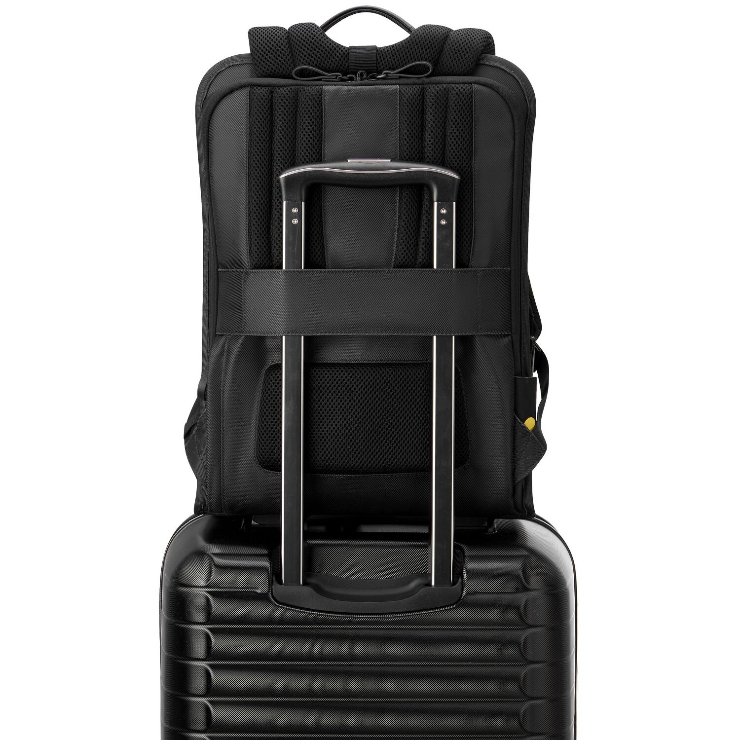 - Ausstattung: Tasche(n) innen, Tasche(n) außen, Rückenpolsterung, Reißverschlussfach, auf Trolley steckbar
