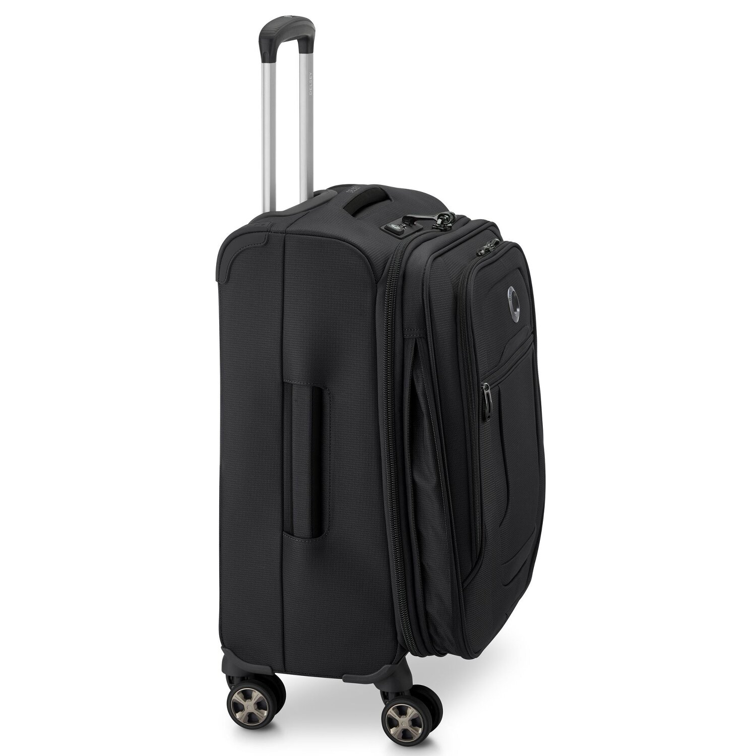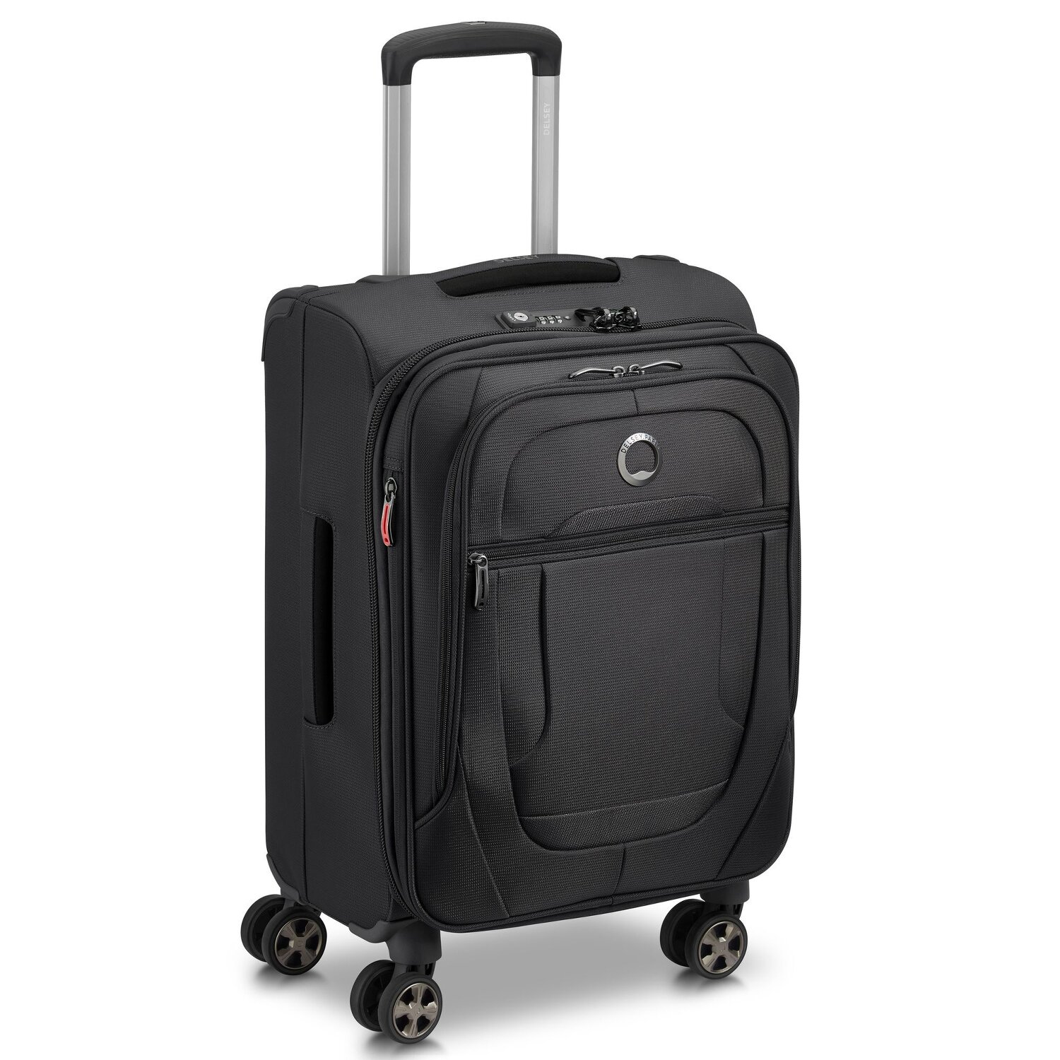 Komfortabler Kabinentrolley der Marke Delsey aus strapazierfähigem Material mit vier leicht zu manövrierenden und laufruhigen Doppelrollen. Das geräumige Hauptfach mit herausnehmbarem und waschbaren Innenfutter bietet viel Platz, während die Packriemen innen Kleidung und andere Gegenstände fest am Platz halten. Besonders praktisch ist der herausnehmbare Organizer, in dem verschiedene Kleinigkeiten oder Kosmetikartikel ihren Platz finden. Der Koffer verfügt über eine Reißverschlussdehnfalte, mit der das Gepäckvolumen vergrößert werden kann. Mit einem TSA-Schloss und patentierten ultra-sicheren Verschlusssystem bietet dieser Trolley die maximale Sicherheit und minimale Aufbruchgefahr durch Öffnen des Reißverschlusses.