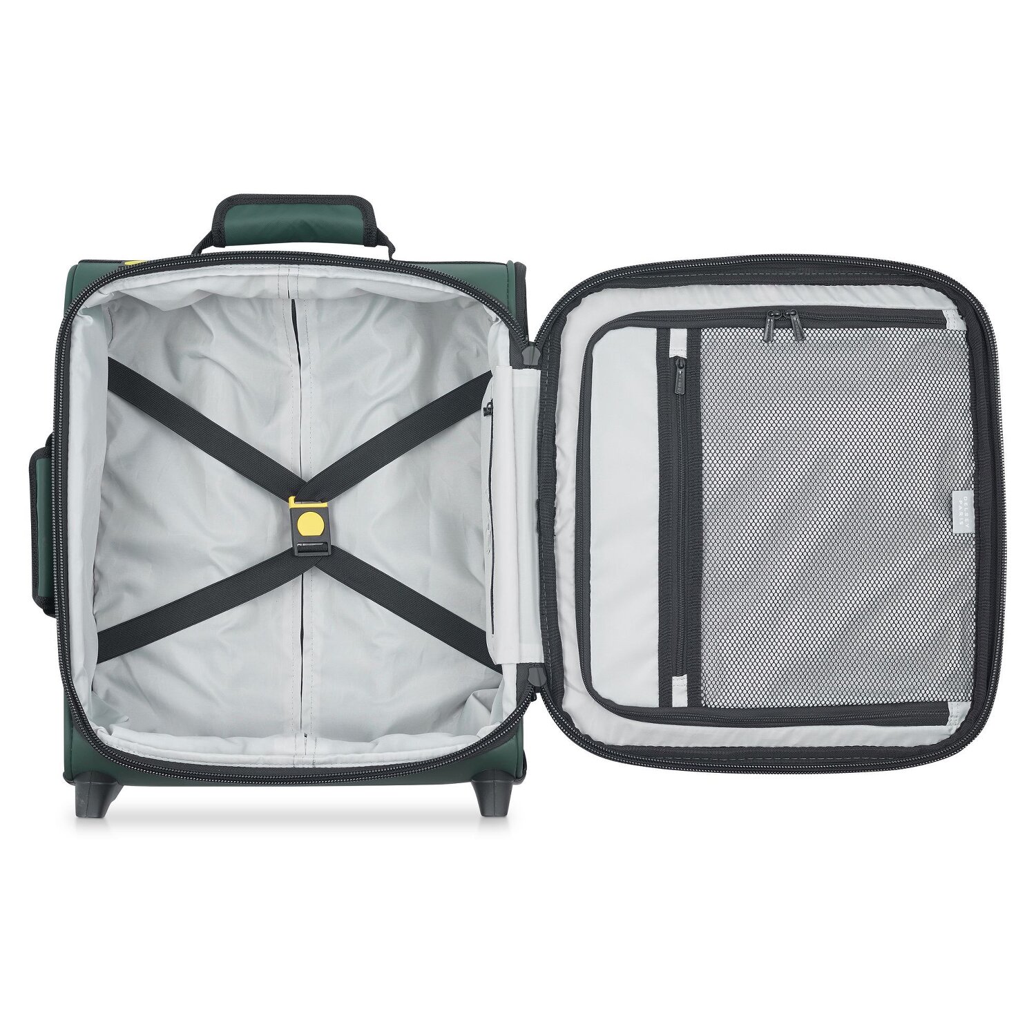 Designstarker 2-Rollen Kabinentrolley von Delsey aus strapazierfähigem Polyester. Dieser Trolley ist nicht nur praktisch, sondern auch geräumig und verfügt über ein TSA-Schloss für mehr Sicherheit. Der perfekte Begleiter für Ihre nächste Reise.