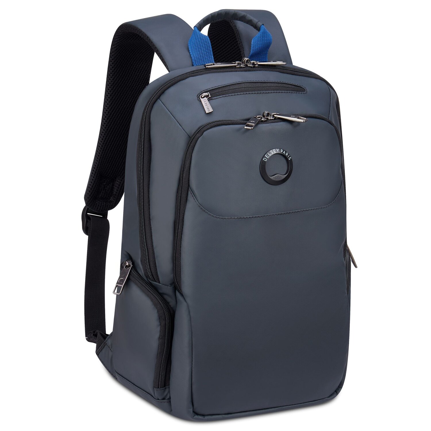 Praktischer Businessrucksack von Delsey überzeugt durch höchste Verarbeitungsqualität, sein modernes, elegantes Design und gute Organisation aus. Er wurde aus wasserabweisendem Material hergestellt, somit können Sie sicher sein, dass Ihre Utensilien jedes Unwetter überstehen. Ein übersichtliches Hauptfach bietet genügend Platz, während das gepolsterte Laptopfach lässt einen Laptop mit Bildschirmdiagonale bis ca. 33,5 cm (13,3 Zoll) sicher verstauen. Weitere Nebenfächer für Handy, Wertsachen, A4-Unterlagen und mehr sowie eine rückseitige Trolley-Halterung sind die weiteren Merkmale dieser Businesstasche. Der praktische Begleiter für den Arbeitsalltag oder Geschäftsreise.