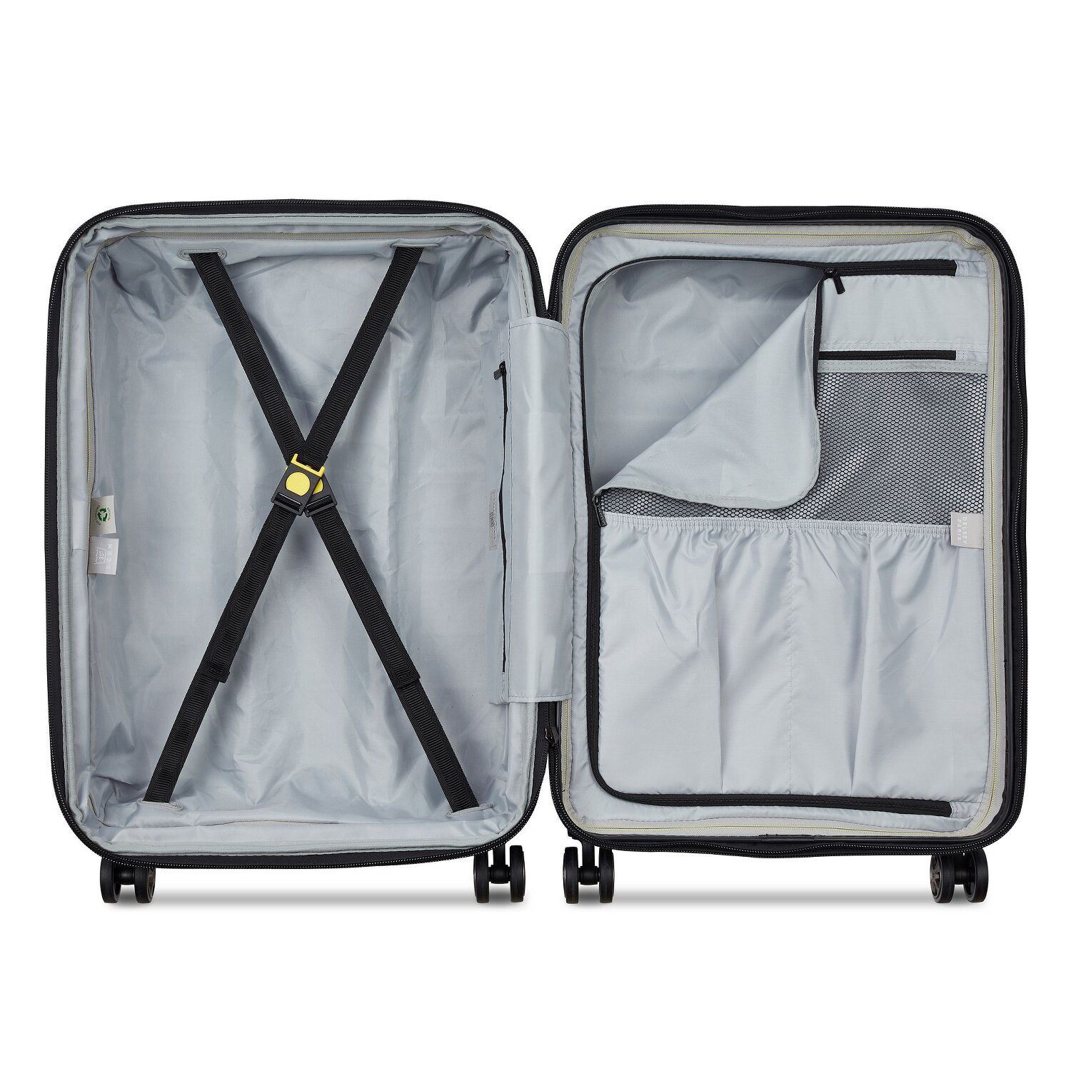 Designstarker Trolley aus der Delsey Shadow 5.0 Serie ist durch die robuste Hartschale aus Polycarbonat auch gegen kleinere Stöße geschützt. Mit zahlreichen Fächern und Taschen und einem großen Hauptfach mit Packriemen bietet der Trolley genügend Platz auf Reisen. TSA-Schloss für mehr Sicherheit und problemlose Gepäckkontrolle in den USA sowie praktische Dehnfalte für die Erweiterung des Packvolumens runden das Produkt ab.