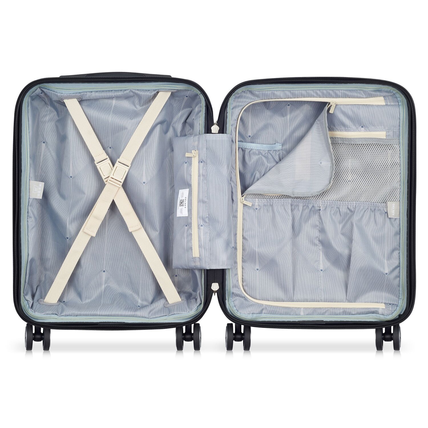 Designstarker Trolley aus der Delsey Shadow 5.0 Serie ist durch die robuste Hartschale aus Polycarbonat auch gegen kleinere Stöße geschützt. Der Trolley kann problemlos als Kabinengepäck genutzt werden. Mit zahlreichen Fächern und Taschen und einem großen Hauptfach mit Packriemen bietet der Kabinentrolley genügend Platz auf Reisen. TSA-Schloss für mehr Sicherheit und problemlose Gepäckkontrolle in den USA, sowie USB-Anschluss für eine Powerbank runden das Produkt ab.