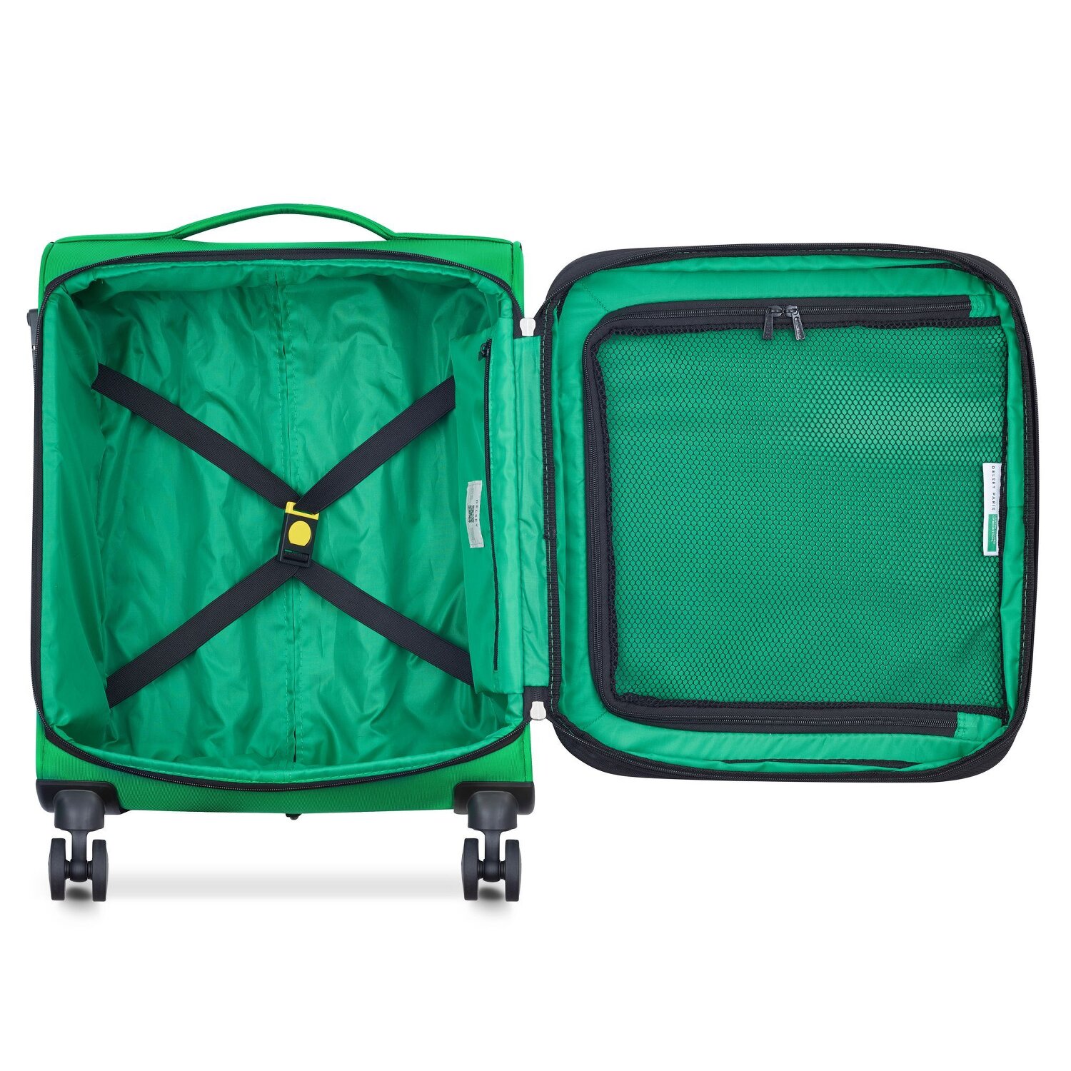 Präsentiert in einer kraftvollen Kollaboration der Marken Delsey Paris und United Colors of Benetton steht unser charmantes Kabinengepäck mit vier Rollen. Polyester, ein Material bekannt für seine Robustheit und Langlebigkeit, verleiht diesem Gepäckstück seine erhabene Eleganz. Es verwöhnt Sie mit Ausstattungsmerkmalen wie einem Kreuzpackgurt, Wäschefach, Dehnfalte, einem arretierbaren Griff und nützlichem Reißverschlussfach sowie Auentaschen. Hervorzuheben ist der Tragegriff, ergonomisch ausgelegt für maximalen Tragekomfort auch auf ausgedehnten Reisen. Bemerkenswert ist das TSA-Schloss, das einen sicheren und sorgenfreien Transport gewährleistet. Gönnen Sie sich dieses maßgeschneiderte Reiseerlebnis von Delsey Paris! Dank der Dehnfalte lässt sich der Koffer auf eine Breite von 24 cm erweitern.