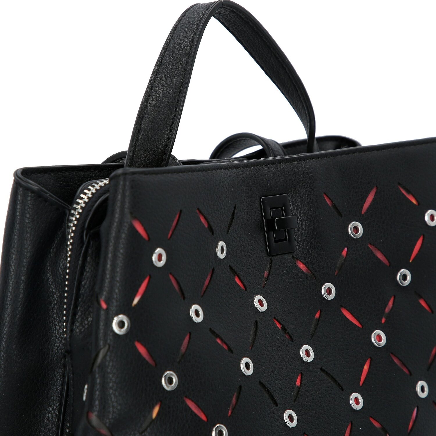 Immer am Puls der Zeit mit dem lässigen Daypack von Desigual aus der Yankee-Serie. Ein Alltagsheld, der sich perfekt in den Tagesrhythmus modebewusster Damen einfügt. Praktische, außen angebrachte Reißverschlussfächer bieten Ordnung im Handumdrehen. Aus robustem und äußerst widerstandsfähigem Polyurethan gearbeitet, trotzt der Rucksack widrigsten Wetterbedingungen. Ein Highlight bildet der komfortable Tragegriff, der dir zu jeder Zeit ein einfaches Handling garantiert. Freu dich über den geschmeidig laufenden Reißverschluss – ein praktischer Verschluss, der dir einen schnellen Zugriff auf deine Essentials ermöglicht. Dieser Daypack ist die perfekte Wahl für den trendigen Stadtdschungel. Erober deinen Alltag im Sturm!