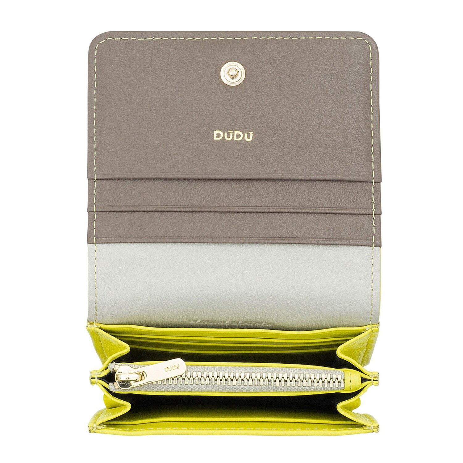 Verleihen Sie Ihrem Alltagsoutfit mit der hochwertigen Damengeldbörse aus dem Hause DuDu einen edlen Touch. Designed mit fünf Kreditkartenfächern, einem Münzfach, zwei Scheinfächern und einem Steckfach, bietet diese Geldbörse ausreichend Platz für alle Ihre Essentials. Sie ist mit einem Druckknopfverschluss versehen, der Ihre Wertsachen sicher aufbewahrt. Gefertigt aus erstklassigem Leder, zeichnet sich das Accessoire durch seine Langlebigkeit und den exquisiten Glanz aus, der mit der Zeit noch schöner wird. Dieses Schmuckstück unterstreicht eindrucksvoll Ihren guten Geschmack. Gönnen Sie sich das Gefühl von Luxus, das in dieser Geldbörse steckt!