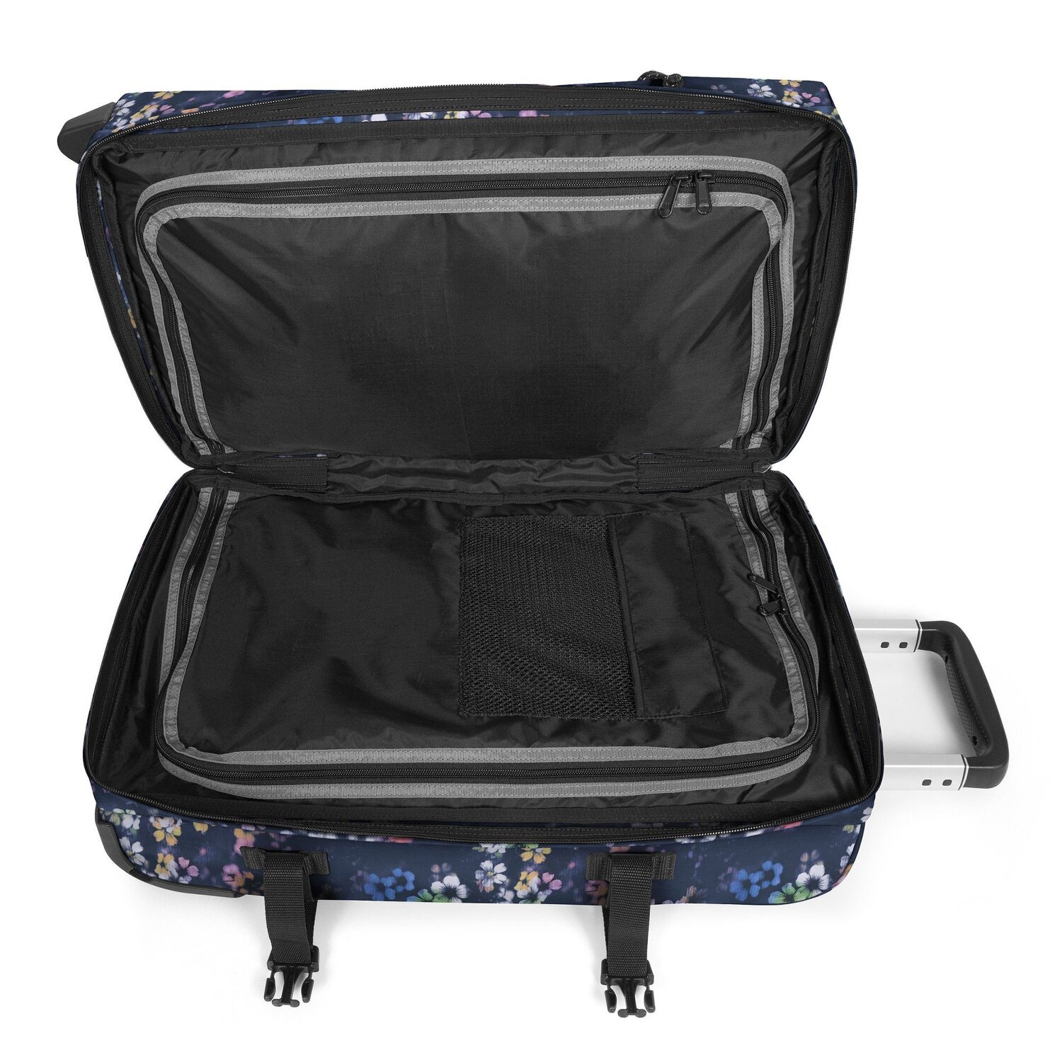 - Ausstattung: Tasche(n) innen, Tasche(n) außen, Netzfach, arretierbarer Griff