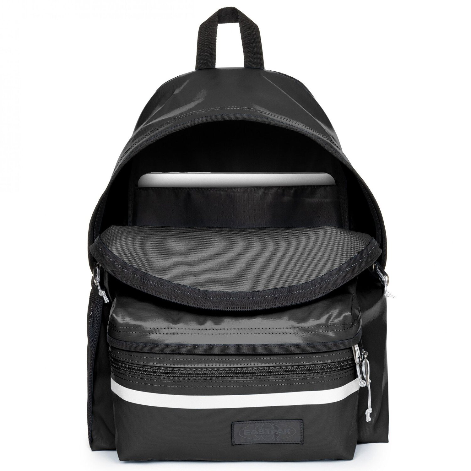 Robuster, funktionaler Rucksack von Eastpak mit reflektierendem Streifen auf der Vorderseite und einem geräumigem Hauptfach inkl. Laptopfach für Geräte mit Bildschirmdiagonale von ca. 33,5 cm (13,3 Zoll). Eine große Vordertasche mit Reißverschluss sorgt für zusätzlichen Stauraum und einen seitlichen Flaschenhalter ist auch vorhanden. Besonderes Highlight ist die Vorrichtung um den Rucksack auf einem Fahrrad zu befestigen. Stellt man das Fahrrad ab und möchte den Rucksack auf dem Rücken tragen öffnet man einfach den Reißverschluss auf der Rückseite damit die gepolsterten Schulterträger freigelegt werden. Der perfekte Begleiter für fast alle Situationen.