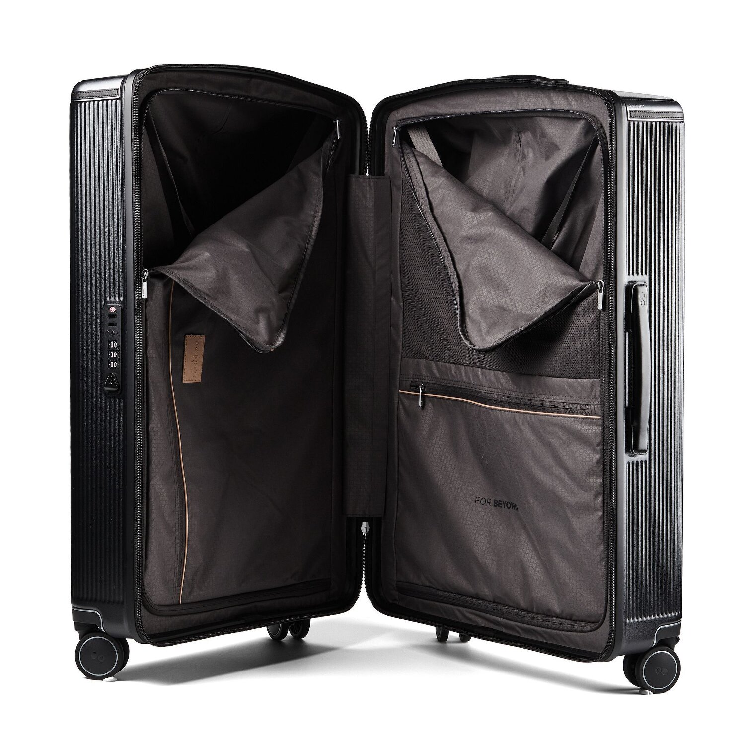 Ein charmanter Reisebegleiter für stilbewusste Globetrotter: der Kabinentrolley mit 4 Rollen aus der Dynasty VLX Serie von Echolac. Fehlerfrei strukturiert, begeistert er mit einem Wäschefach, einem Netzfach und einem Reißverschlussfach, um alle persönlichen Gegenstände sortiert und griffbereit zu halten. Sein Gehäuse aus verlässlichem Polycarbonat trotzt jedem Wetter und den unsanften Umgangsweisen von Gepäckbändern. Mit seinem eingebauten TSA-Schloss sind persönliche Besitztümer sicher verriegelt. Der Tragegriff vereinfacht das Handling und macht dieses Handgepäck zum treuen Allrounder. Unverzichtbar auf jeder Reise!