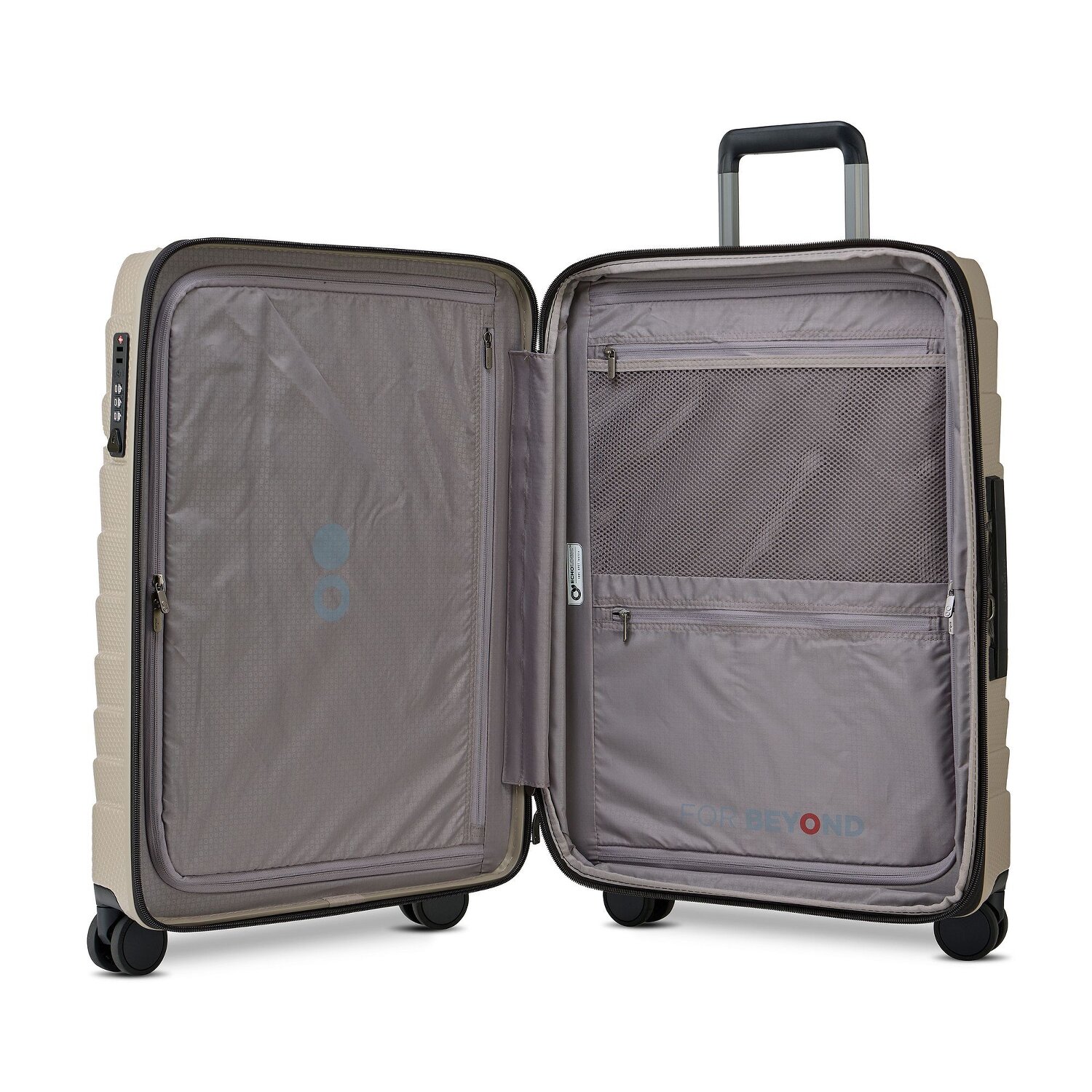 Begrüßen Sie Exo, die designstarke Hartschalenkoffer-Serie von Echolac! Mit vier wendigen Rollen gleitet er nicht nur, er tanzt beschwingt durch jeden Flughafen. Entdecken Sie die luxuriösen Details - eine Dehnfalte für spontane Shopping-Erinnerungen, organisierende Fächerträume wie Wäschefach, Netzfach und Reißverschlussfach und ein arretierbarer Griff für Ihr Gepäckschloss. Polycarbonat – das Material der technologischen Meisterleistungen – verheißt Leichtigkeit, Widerstandsfähigkeit und Unverwüstlichkeit. Oben auf? Ein Tragegriff, der wie eine Einladung zur Weltreise schwingt! Befreiten Geistes, beherzt und mit TSA-Schloss gesichert, öffnet Ihnen dieser Echolac-Koffer das Tor zur Welt! Also, worauf warten Sie noch? Erleben Sie Reisen auf eine neue Art und Weise! Dank der Dehnfalte lässt sich der Koffer auf ein Volumen von 101 L erweitern.
